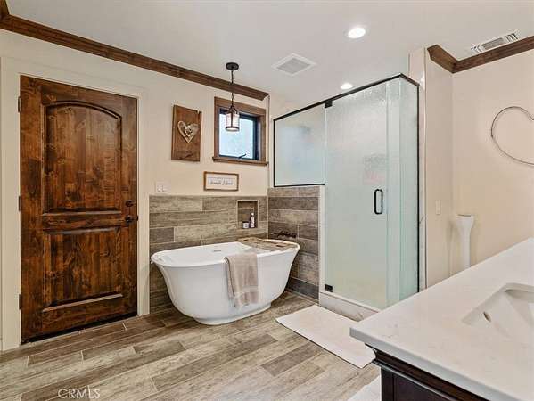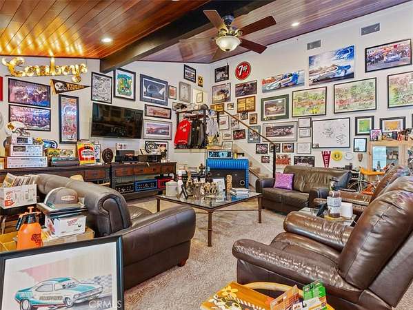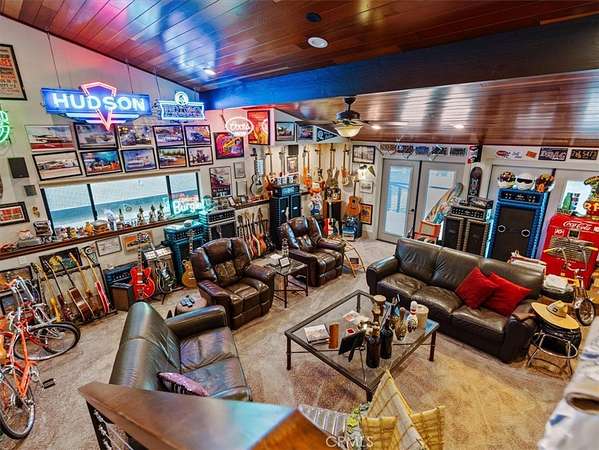 A 31' x 56' detached garage/workshop includes 220V power, LED lighting, and automatic doors, plus a detached bonus room ideal for an office, gym, or business use. Attached is “The Cabana,” a 13' x 31' guest retreat with bathroom, washer/dryer, and pullout sofa.