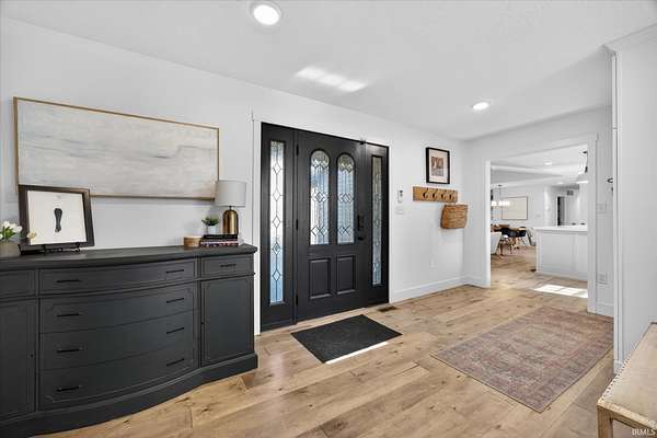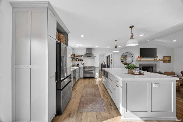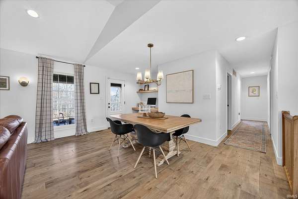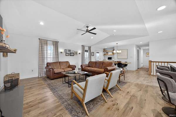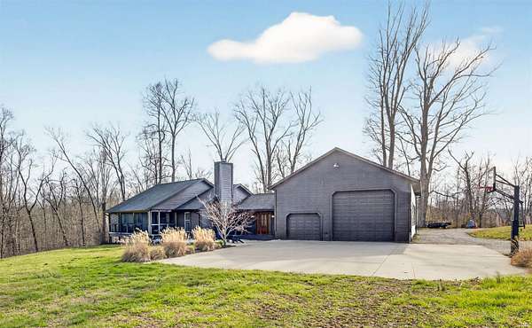 Tucked away on nearly 30 acres of serene, wooded landscape, this exceptional 4-bedroom home offers farmhouse comfort and modern updates. The peaceful outdoor setting and interior craftsmanship make this property shine. The open-concept floorplan seamlessly connects the living room, dining area, and gourmet kitchen, creating an inviting space ideal for both everyday living and entertaining. The attached screened porch and large deck add additional space to dine, relax, and take in the stunning landscape. The living room is anchored by a cozy wood burning fireplace with quartz surround and a custom built-in workspace. The kitchen is a true showstopper, featuring stainless appliances, quartz countertops, a spacious island with seating, and stylish open shelving. The main living areas are appointed with beautiful engineered hardwood flooring and abundant windows add warm natural light. The main level primary suite provides a private retreat, with two additional bedrooms and full bath completing the main level. Downstairs, the finished walkout basement expands your living space with an additional bedroom, 1/2 bath, spacious rec room, office nook, and a convenient laundry room. Car enthusiasts and adventurers will love the 5-car garage, complete with a pull-through bay large enough to accommodate an RV. The large concrete pad makes parking a breeze and adds space to play basketball. A new roof, gutters, carpet, and exterior paint are just a few of the recent updates. This one-of-a-kind property offers the rare opportunity to enjoy refined design in a truly tranquil setting. HSA home warranty included!