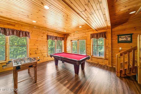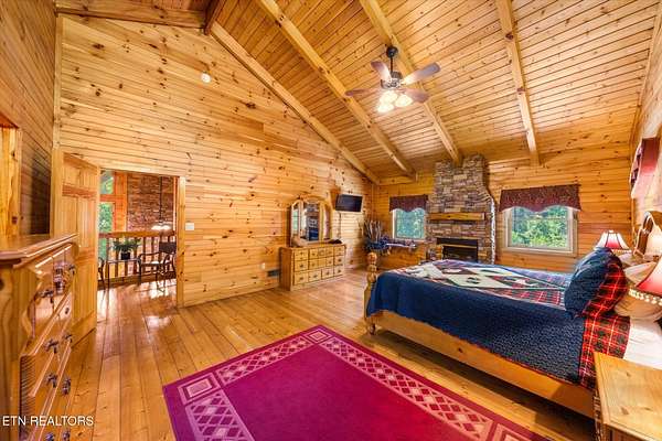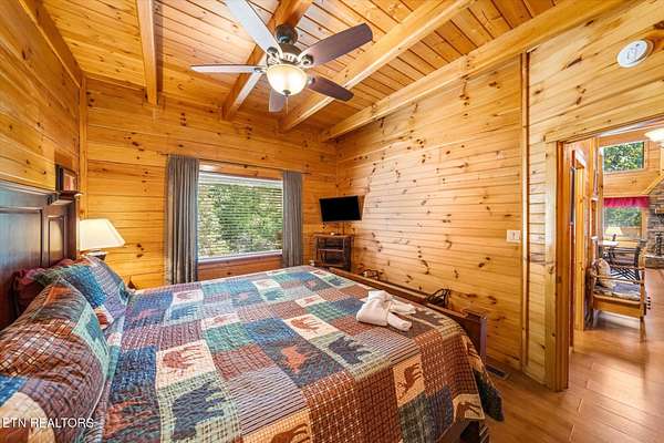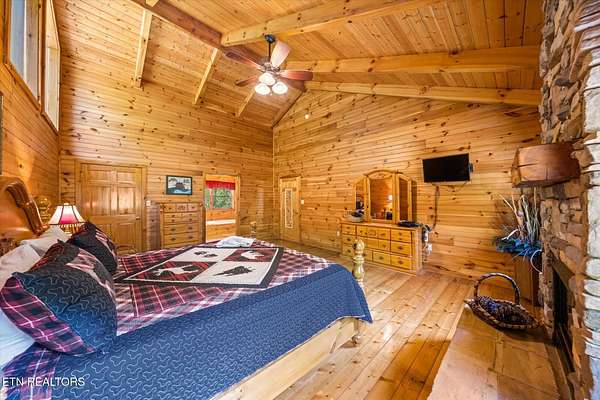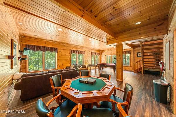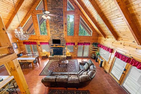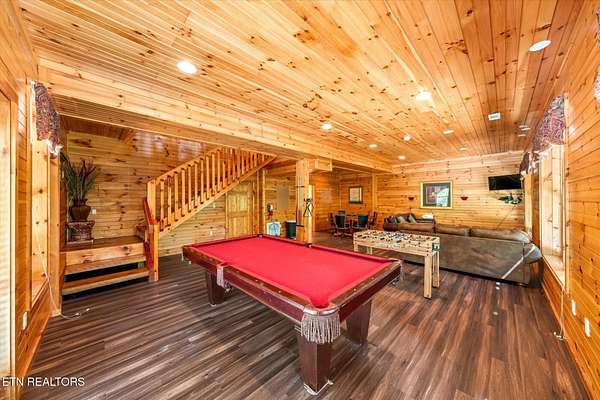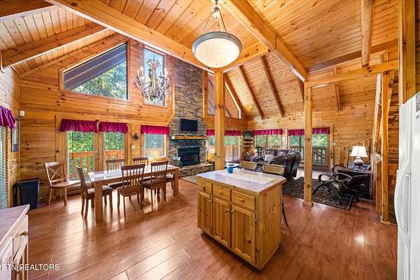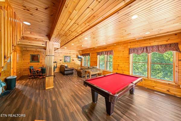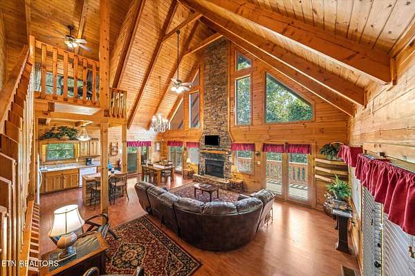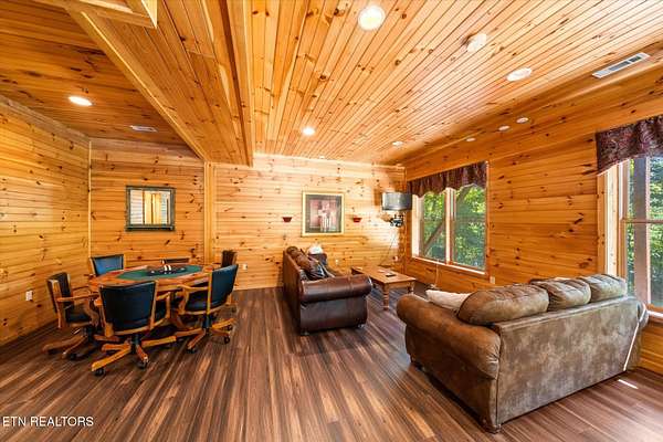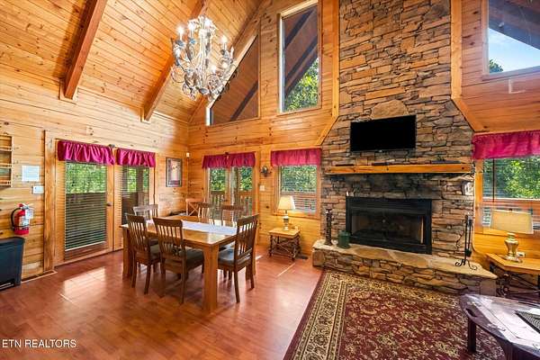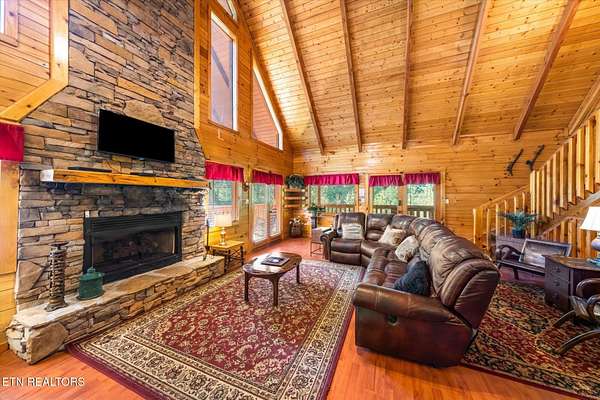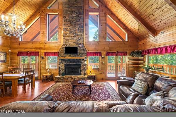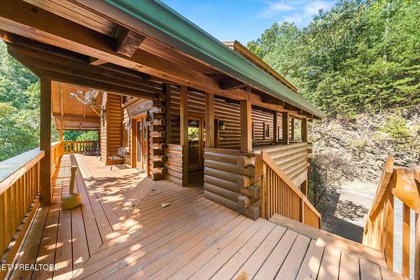 INVESTOR'S DREAM! Turn-key Short-term Rental with Fresh Upgrades!! This upgraded Smoky Mountain cabin is an exceptional investment for those seeking a turn-key short-term rental with proven appeal and growth potential. Perfectly nestled between Pigeon Forge and Gatlinburg - just moments from The Parkway - it offers guests the rare blend of easy access to attractions with the tranquility of a private, wooded setting. Distinctive Cabin Features - Freshly upgraded 3-bedroom, 3-bath layout designed for comfort and rental versatility, featuring soaring ceilings, panoramic windows, and a striking stone fireplace that warmly anchors the living space. Multiple recreation spaces your guests will love. - The newly finished lower level delivers outstanding family appeal, now showcasing a vibrant bunk and recreation room with two sets of bunks, a plush sectional, and a custom mountain mural - an inviting haven for children or larger groups. - The expansive basement game room is a social highlight, offering both a pool table and poker station for extended entertainment - perfect for maximizing guest satisfaction and repeat bookings. Turn-Key Investment and Upgrades - Recent improvements include a new recreation room that can accommodate 6 additional guests, premium HVAC system, robust new retaining wall, landscaping, refinished driveway, high-speed internet, smart TVs throughout, new gutters, and more. These upgrades offer peace of mind while enhancing marketability and guest comfort. - Over 1,000 sq. ft. of covered wrap-around porches invite guests to enjoy the serene Smoky Mountain views year-round, providing ideal spaces for morning coffee or evening relaxation. Luxurious Private Retreat - The second-story master suite exudes rustic elegance with dramatic cathedral ceilings, a cozy fireplace, and a spa-inspired en-suite bath - presenting the ultimate mountain retreat experience for owners or guests. Short-Term Rental Market Advantage - With the continued popularity of overnight rentals in this area, this cabin is fully outfitted and poised to remain a top-performing asset ready to grow your portfolio or serve as an unforgettable personal mountain getaway. Seize this opportunity to own a truly turn-key, high-earning rental property in one of Tennessee's most coveted vacation markets. Schedule your private showing and explore why this cabin is a stand-out investment in the heart of the Smokies.