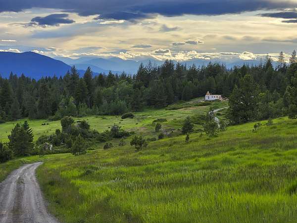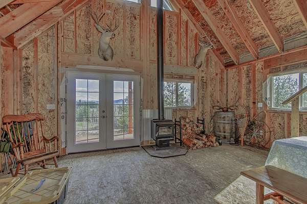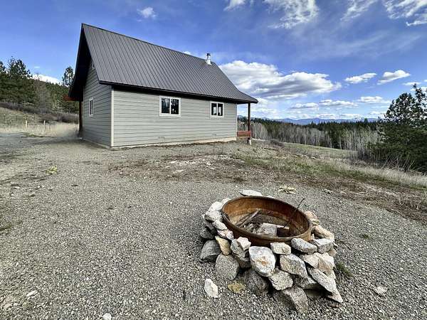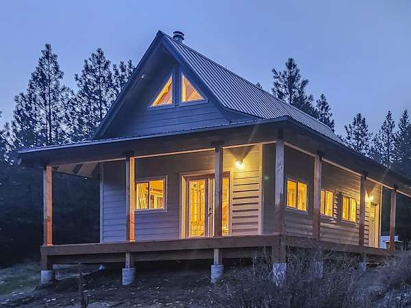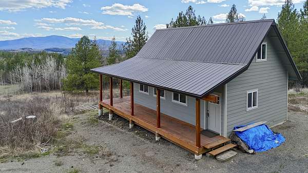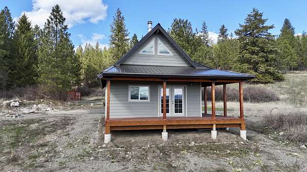Imagine a sky full of mountain views from your wrap-around covered deck overlooking wide open pastures. Located at the end of the road and behind 2 gates, this newly constructed cabin is unfinished but the shell has everything you need to create your own mountain retreat -- steep metal roof, cedar timber posts, open A-frame design with loft, and big peak windows that pull in views of 49 Degrees North and the surrounding ranges. Electric is wired in for a generator and power is at the property line. The 22 acres runs from open meadow into mixed ponderosa, Douglas fir, and aspen draws, with timber company land off the back boundary and national forest beyond. Drilled well on site, but condition unknown. Shipping container included. Cisterns located uphill from cabin for water storage.