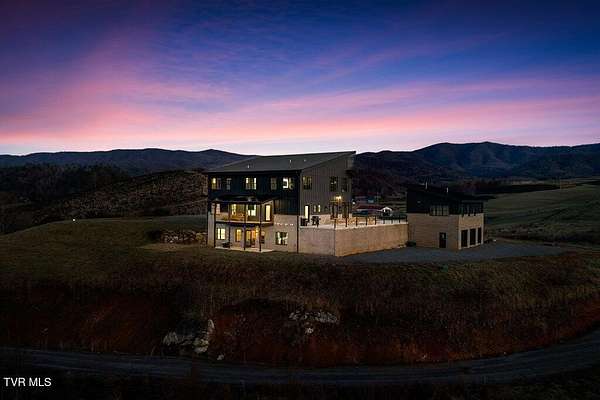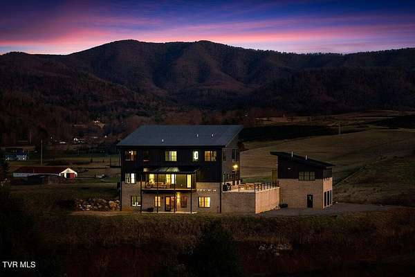 *Newly Improved Price* This exceptional home boasts over $160,000 worth of Pella Architectural Series windows & doors, including 310-foot bifold full-view doors leading to the front patio & a floating porch off the primary bedroom. Constructed w/ a durable Zip System underlayment & factory-painted LP Smart Siding, the home is accented w/ tumble bricks & cedar soffits for timeless charm. Fully spray-foamed insulation across all three levels, including floor trusses, ensures soundproofing & fire resistance. The custom kitchen features leathered granite countertops, Bosch appliances & a butler's pantry w/ a mop sink. Highlighting its historic appeal, the home is adorned w/ 80-year-old reclaimed barn flooring, custom barnwood light fixtures, & two 900-pound rough-cut beams from Boone, anchoring the great room's 28-ft-high ceilings. The main suite includes a luxurious bath w/ a spacious 5-by-8-foot shower, double rainfalls, a freestanding soaker tub with views of the Neva Valley, and a custom maple vanity by JSpier Custom Crafting. A floating porch off the primary bedroom offers serene sunrise views, while a bricked retaining wall with a concrete patio and cable railings showcases breathtaking sunsets over Doe Mountain. The home also features 2-story handcrafted metal staircase w/ cedar treads, three dual fuel HVAC units, two on-demand gas water heaters, and new Samsung washer and dryer units. The walkout basement includes a family room, 2 bonus rooms, custom rock features, carpeted floors, a concrete patio and reclaimed barn metal ceilings. Additionally, there is a guest apartment above the garage with an additional 2 rooms, 2 full bathrooms, full kitchen, living room w/ fireplace, & laundry. Located within 1 hour of 3 ski resorts, Bristol speedway, & 5000 acres of atv/hiking trails, 5 min to regional airport & 30 min to AppState. New luxury Saratoga Spa included. Discrepancy between professional sq ft & tax record.