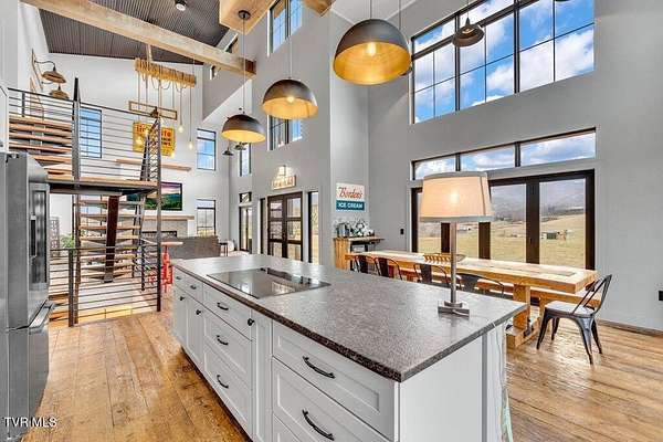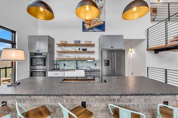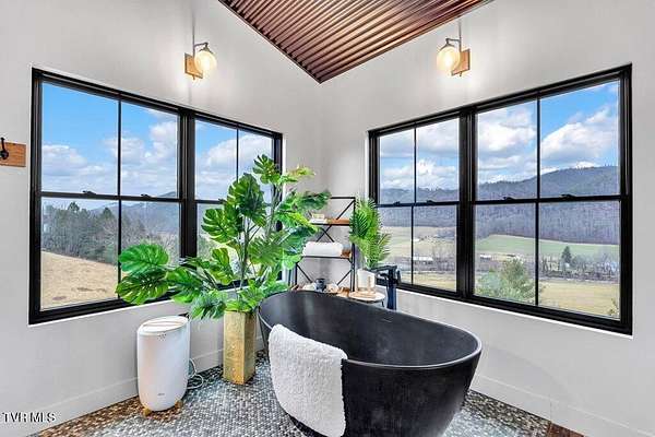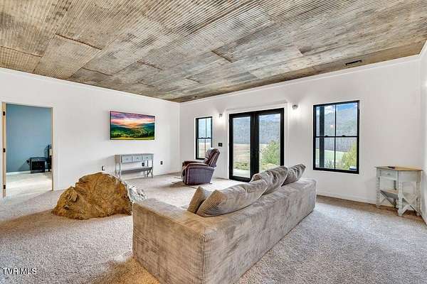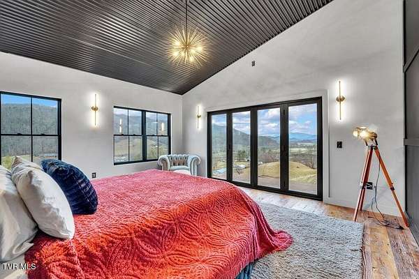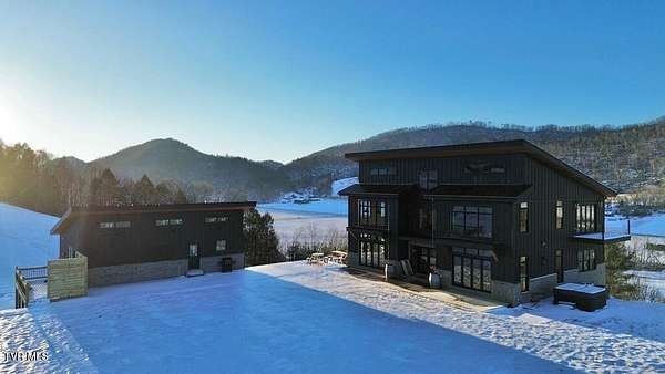 Experience elevated mountain living in this one-of-a-kind custom retreat, thoughtfully designed for comfort, function, and timeless appeal. Situated in an unrestricted-use area with strong short-term rental potential, this expansive property blends luxury craftsmanship with flexible living spaces-ideal as a full-time residence, multigenerational home, or income-producing vacation rental. Offered fully furnished, this property presents a turnkey opportunity to embrace a thoughtfully curated mountain lifestyle. mountain lifestyle. Showcasing over $160,000 in Pella Architectural Series windows and doors, the home opens to the outdoors through a striking 310-foot bifold glass wall connecting the great room to an expansive front patio with long-range views of Doe Mountain. A floating private porch off the primary suite captures peaceful sunrises, while the bricked terrace and concrete patio with cable railings offer the perfect place to enjoy mountain sunsets. Built with performance and longevity in mind, the home features Zip System underlayment, factory-finished LP Smart Siding, and distinctive tumbled brick and cedar soffit detailing. Full spray-foam insulation throughout-including floor trusses-provides exceptional energy efficiency, soundproofing, and fire resistance. The custom kitchen is both beautiful and functional, with leathered granite countertops, Bosch appliances, and a walk-in butler's pantry with utility sink. Authentic reclaimed materials-such as 80-year-old barnwood flooring, handcrafted barnwood lighting, and two 900-pound rough-cut beams from Boone-anchor the dramatic 28-foot ceilings in the great room, adding depth and warmth. The main-level primary suite offers a spa-style bath with a dual rainfall 5-by-8-foot shower, freestanding soaking tub positioned for unobstructed Neva Valley views, and a custom maple vanity by JSpier Custom Crafting. A two-story handcrafted metal staircase with cedar treads connects each level, and three dual-fuel HVAC units and two on-demand gas water heaters ensure optimal climate control and efficiency. On the lower level, a walkout basement provides added flexibility with a large family room, two bonus rooms, reclaimed barn metal ceilings, carpeted flooring, and a covered concrete patio that opens to the surrounding landscape. Above the detached garage, a fully independent guest apartment enhances the property's versatility and value. This private space includes two spacious rooms, two full bathrooms, a full kitchen, a comfortable living room with fireplace, and dedicated laundry-all ideal for visiting family, live-in support, or short-term rental income. Additional features include a Samsung washer and dryer set conveniently located on the main level, a luxury Saratoga spa for year-round enjoyment, and pre-wiring for a whole-house generator to support seamless living in all seasons. Perfectly located just five minutes from the regional airport, 30 minutes from Appalachian State University, and less than an hour to three ski resorts, Bristol Motor Speedway, and over 5,000 acres of ATV and hiking trails, this rare mountain property is equally suited for escape, investment, and everyday living.