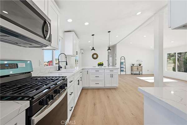 INTRODUCING THIS 2.25 ACRES RANCH STYLE HOME. FENCED ON A HIGHLY DESIRED AND SPACIOUS FLAT CORNER AND CLEAN LOT SIZE OF 98,010 SQUARE FEET. A SHORT DRIVE TO VARIOUS MAJOR SHOPPING CENTERS & NEAR FREEWAYS. HOME FEATURES 3 SPACIOUS BEDROOMS AND 2 FULL BATHROOMS. BOTH PRIMARY AND SECONDARY BATHROOMS ARE UPDATED WITH NEW VANITIES AND QUARTZ COUNTERTOPS ALONG WITH NEW PLUMBING FIXTURES AND NEW MODERN LIGHTING. BE FIRST TO ENJOY THE BRAND-NEW MODERN AND COZY KITCHEN WITH AN INVITING LARGE AND OPEN FOOR-PLAN WITH A DINING BREAKFAST BAR WITH QUARTZ COUNTERTOPS AND NEW RECESSED LIGHTING HIGHLIGHTING THE VAULTED CEILING AND BRAND-NEW APPLIANCES, NEW FLOORING, NEW FRESH INTERIOR & EXTERIOR PAINT, ALL NEW DOORS AND CLOSET DOORS, NEW DUCTLESS A/C SPLIT SYSTEMS, NEW ROOF, NEW WINDOWS, NEW ELECTRIC WATER HEATER AND SEPARATE STORAGE BARN. BEGIN YOUR JOURNEY AND PICTURE YOURSELF RELAXING IN THE NEW PATIO DECK WITH A CUP OF COFFEE THIS HOLIDAYS. A GREAT ADDITION TO YOUR VERY OWN STAYCATION DESERT TRANQUIL SANCTUARY PRIVATE AND HUDDLED AWAY FROM IT ALL.