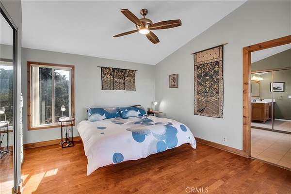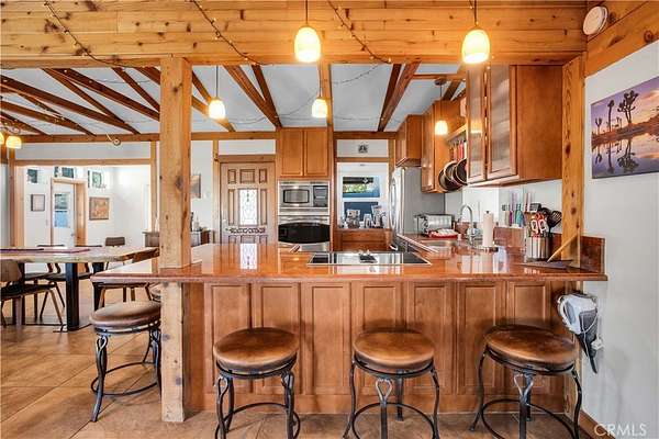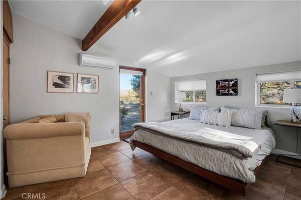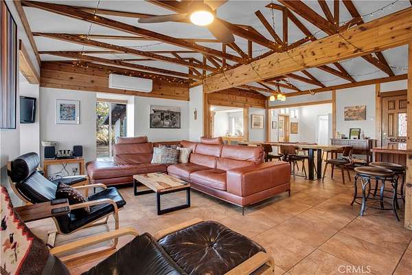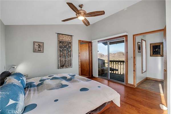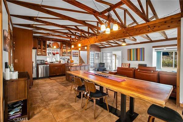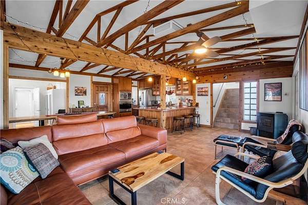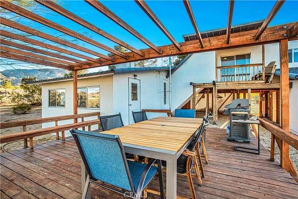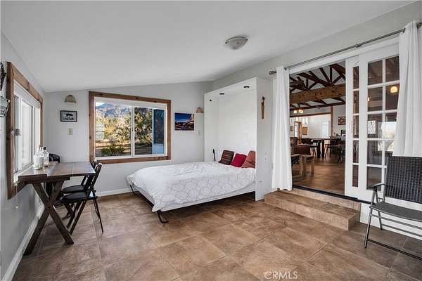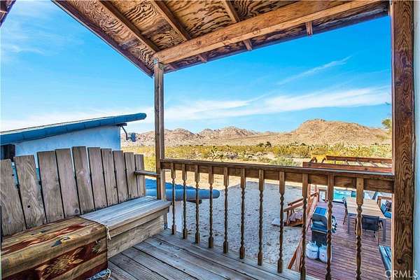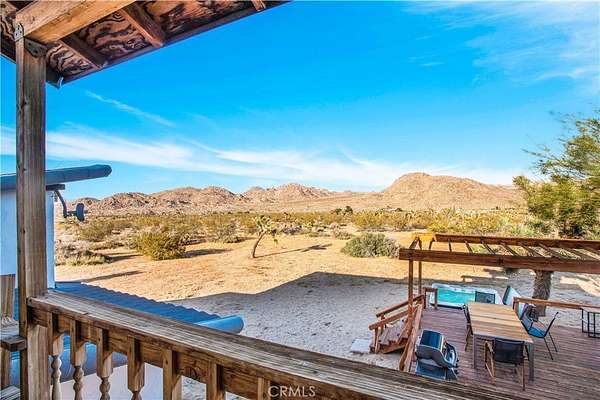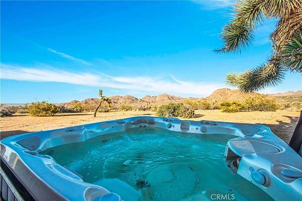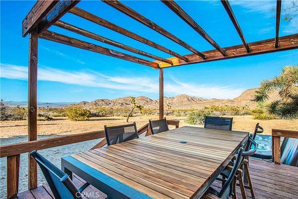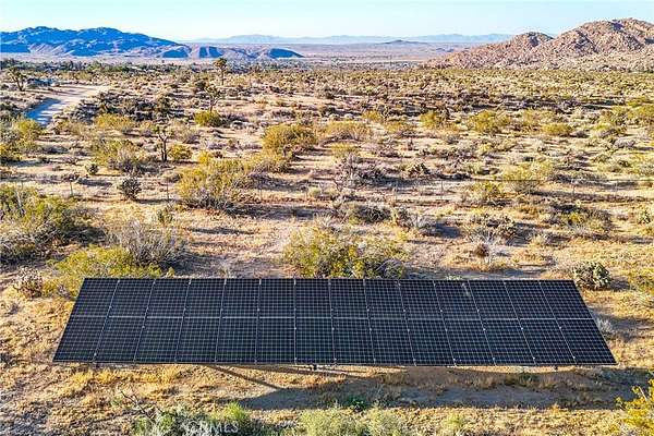 TWO JOSHUA TREE HIGHLANDS PROPERTIES TOTALING 10 ACRES! A nature lover's delight, featuring breathtaking views, this enchanting desert refuge is an easy hike to a 900+ acre desert preserve and a short drive to the Joshua Tree National Park entrance. The main house, a remarkable 2-bedroom, 2-bath entertainer's dream with a welcoming guest quarters, is situated on 5 acres, while the adjacent 5 acres is vacant and ready for buyers to unleash their architectural vision. Comfort and style intersect in the primary home, which boasts a vast, open concept living space. The modern chef's kitchen with sparkling granite countertops and stainless-steel appliances opens into an expansive dining and entertaining area. The beautifully exposed wood beams and trusses lend a warm, inviting ambience. A versatile yoga room or office provides additional flex space for relaxation or accommodating overnight guests, who can also enjoy the privacy of the adjacent guest house--a spacious studio bedroom with a bathroom which offers the perfect retreat for friends or family. Year-round comfort and customized climate control is assured with 3 zoned mini-split HVAC, a large Mastercool evaporative cooler and cozy pellet stove. The 10 KW paid ground-mounted solar array ensures energy needs are effortlessly met, with electric bills virtually nonexistent. Outside, the allure continues with metal tile roofing, towering pines and Joshua Trees, and a sprawling view deck, ideal for alfresco dining or entertaining against the backdrop of wondrous vistas. Enjoy tranquility in the newer spa while stargazing and listening to coyotes keen in the distance. As if that weren't enough, your purchase includes the adjacent 5-acre parcel on the north side, complete with perc test and site prep work already completed, including a survey. This is a phenomenal deal! Your oasis awaits--schedule your private tour today!
