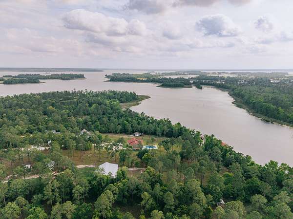 Improvements include two deep wells, a septic system, and a gas-powered Generac generator. A 32x40 implement shed and a 20x21 Carolina carport provide ample storage for boats and equipment. Three fully permitted docks are equipped with power, water, and boat lifts, for easy in-and-out bass fishing.
