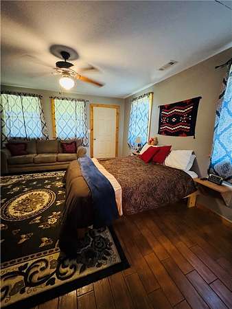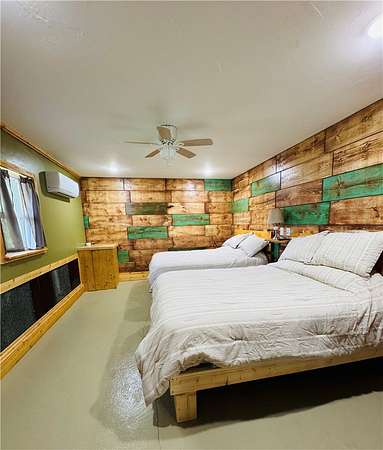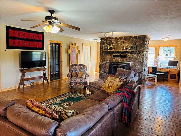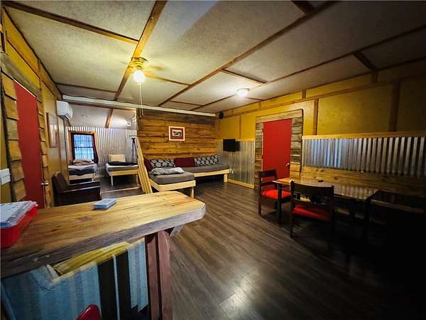 Centerpoint Lodge in Newton County, Arkansas is ideally located at the corner of Hwy 43 and Fire Tower Road, directly across from the popular Centerpoint Trailhead. Built in 1976, this lodge offers unique versatility with multiple guest accommodations. The walkout basement features two spacious suites with queen beds, kitchens, and bathrooms, while the main level highlights the owner's quarters with a large kitchen, dining area, rock fireplace, and a wraparound porch. Additional options include hostel-style rooms with shared baths, private suites, plus a separate cabin/bunkhouse that sleeps 6-8 with its own kitchen and bath. Outdoor amenities include RV hookups with water and sewer, a shower house, and horse pens for trail riders. This rare find combines investment potential, income opportunity, and direct access to one of Arkansas's most scenic outdoor destinations. This property can be owner financed with considerable downpayment. Residentially listed 1325545
