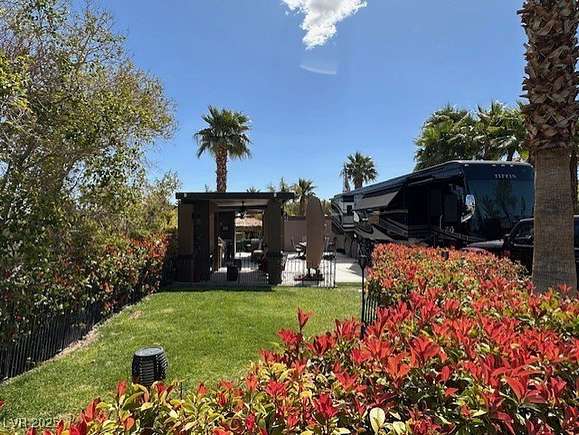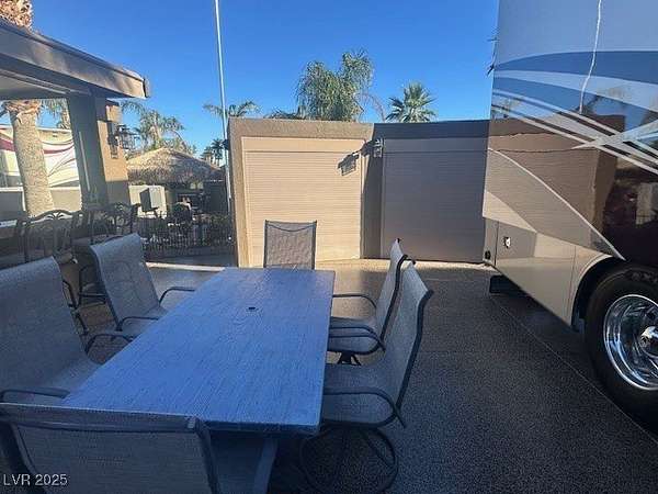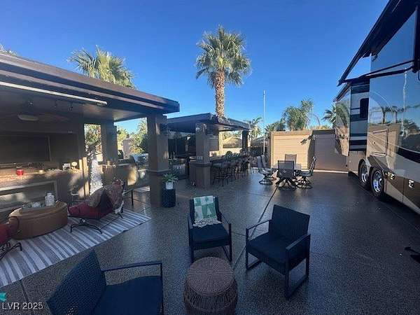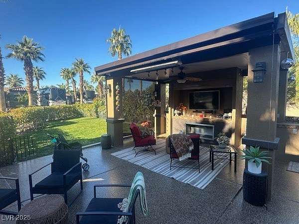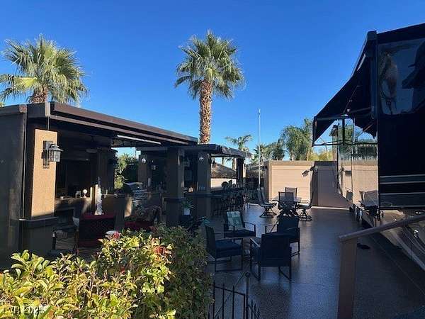 Luxurious Corner Site! The ultimate in resort-style living with this exceptional corner lot that is beautifully landscaped offering privacy, elegance, and a perfect space for relaxation and entertainment. The lot features an epoxy driveway and two hard-roof structures that create an inviting outdoor living space, including a cozy TV sitting area complete with a fireplace. For added comfort, roll-down shades provide privacy, creating a secluded retreat whenever you desire. The full kitchen is equipped with a bar-top seating area, offering an ideal spot for casual meals or socializing. The expansive dining table allows for al fresco dining or entertaining guests in style, while two large storage areas ensure ample room for all your essentials. Whether you are hosting a gathering or simply enjoying quiet moments, this lot provides a versatile space tailored for luxury and convenience. Don't miss the opportunity to own this incredible corner lot - your perfect retreat awaits!