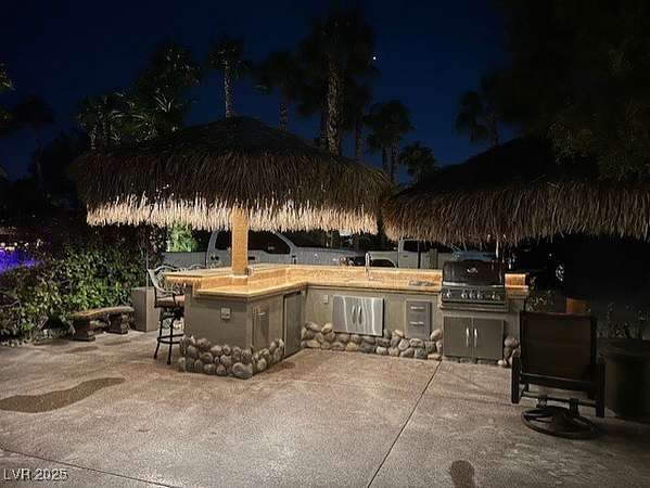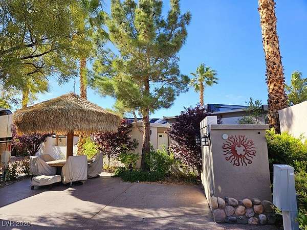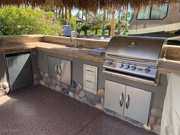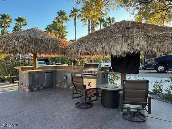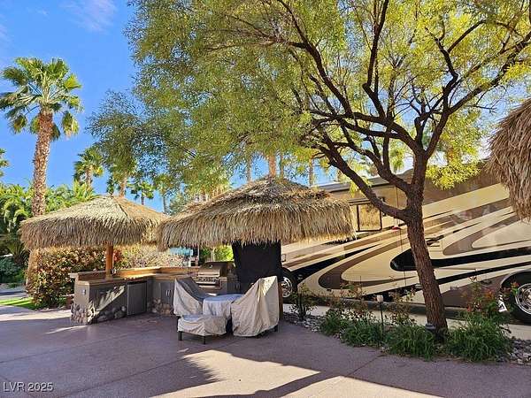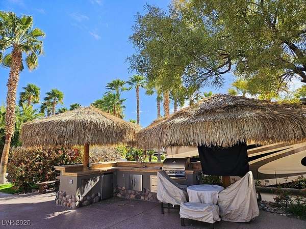 Est $2,303/moLocated within the Class A Las Vegas Motorcoach Resort, this site is right around the corner from the clubhouse! This easy back in site with epoxy driveway has a full outdoor kitchen with granite counters, bar seating, grill, refrigerator, built in dining table, TV area, three brand new palapas, and storage. OWNER WILL CARRY!