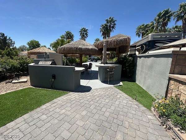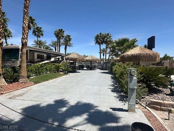 Lot 167 at the exclusive, guard-gated Las Vegas Motorcoach Resort offers the ultimate in luxury and entertainment, with an oversized layout designed for hosting and relaxation. Multiple seating areas, palapas, and an outdoor kitchen provide the perfect setting for dining and socializing, while lush landscaping and thoughtful privacy features create a serene and secluded atmosphere. The spacious living area includes ample storage, keeping everything neat and organized, and the entire lot is beautifully landscaped to enhance its natural beauty. Located in a prime area of the resort, this lot combines privacy with convenience, offering an ideal retreat for those seeking both comfort and an exceptional outdoor lifestyle in the heart of Las Vegas. Whether you're entertaining or enjoying quiet moments, Lot 167 provides the perfect space to create lasting memories in style.