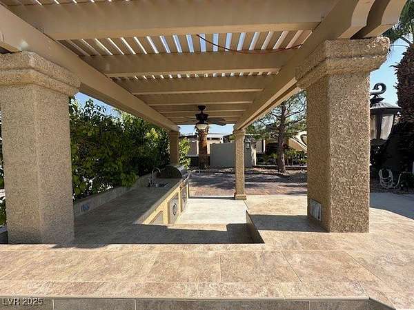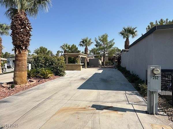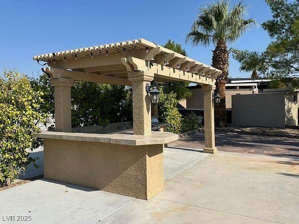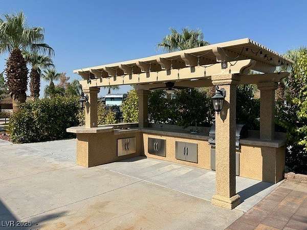 Est $2,185/moLocated in the Guard Gated Las Vegas Motorcoach Resort, this is the lowest priced lot with a hard roof structure! This site includes a beautiful pergola roof cover with bar seating, stainless steel bbq and sink, storage cabinets, and lighting. At the back of the site are decorative pavers and plumbing for future improvements. Golf cart included! Priced to move!