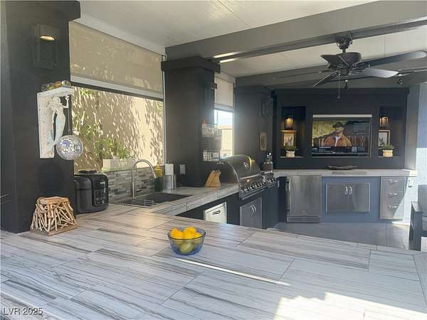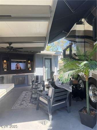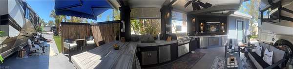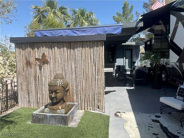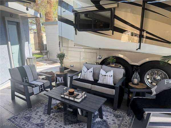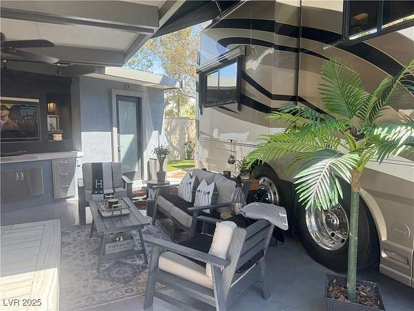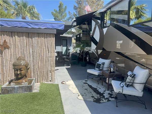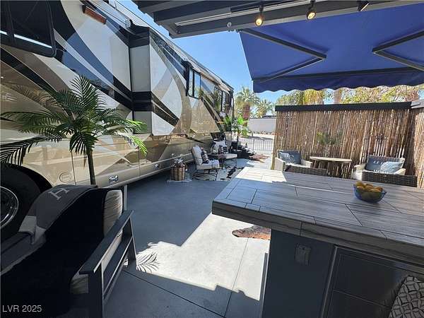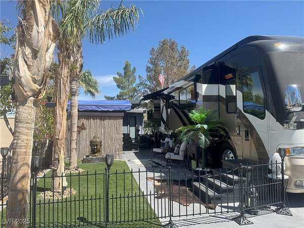 Est $2,857/moLocated within the Class A Las Vegas Motorcoach Resort, this site amazing site is equipped with a modern hard roof structure built out with full kitchen, bar seating, living room and TV area, comfort station, storage, plenty of privacy, and more! Priced to move quick!