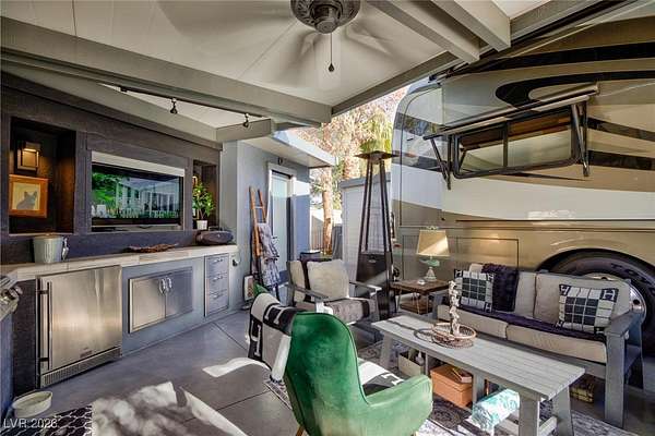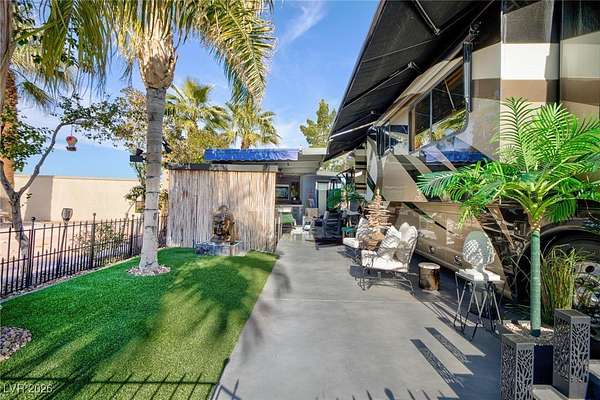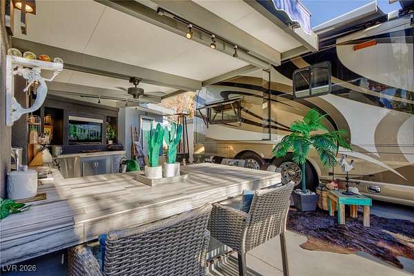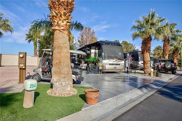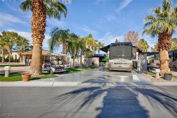 Est $2,822/moLocated within the Class A Las Vegas Motorcoach Resort, this site amazing site is equipped with a modern hard roof structure built out with full kitchen, bar seating, living room and TV area, comfort station, storage, plenty of privacy, and more! Priced to move quick!