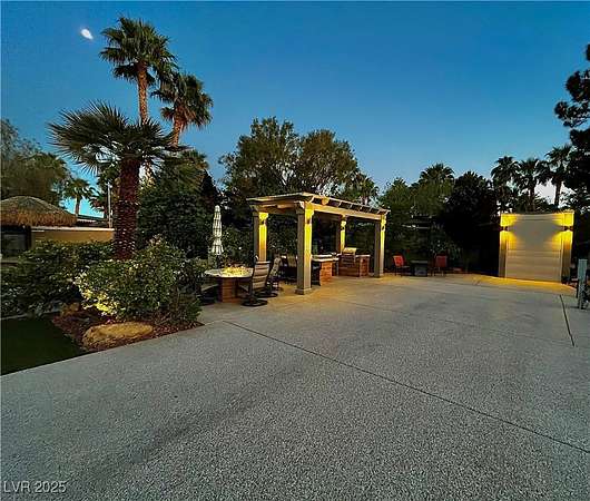 Est $2,221/moLocated within the Class A Las Vegas Motorcoach Resort, this site is an Immaculate “Old Town” Beauty! This fantastic north facing site features a Pergola roof cover, built in marble fire table, storage shed, water softener, epoxy driveway, lush landscaping, and gorgeous kitchen with marble counters, stainless appliances, and pellet grill. Super unique site that will go fast!