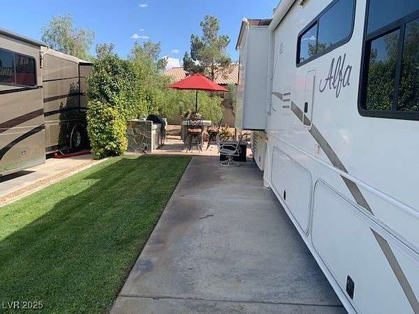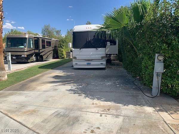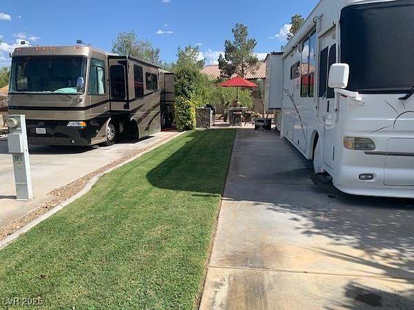 Est $2,173/moLocated within the Class A Las Vegas Motorcoach Resort, this site beautiful North facing site has plenty of privacy and no coach behind. This site also features an outdoor kitchen with stainless steel appliances, kitchen island, storage sheds, umbrella, patio furniture, heater, and more!