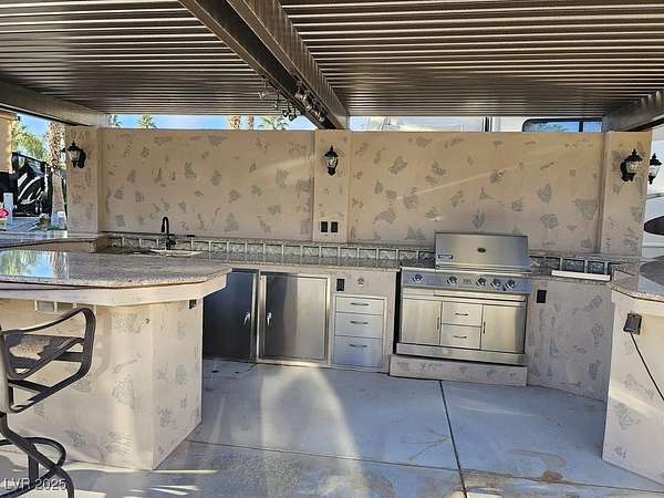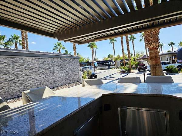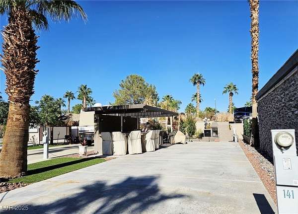 Est $2,390/moLocated within the Class A Las Vegas Motorcoach Resort, this site has a great location near the clubhouse! This site is located near all the resort amenities and features a hard roof structure, full kitchen, bar seating area, fireplace, storage area, and much more!