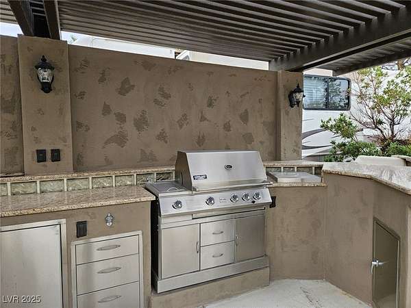 Est $2,355/moLocated within the Class A Las Vegas Motorcoach Resort, this site has a great location near the clubhouse! This site is located near all the resort amenities and features a hard roof structure, full kitchen, bar seating area, fireplace, storage area, and much more!