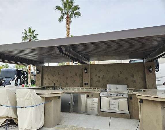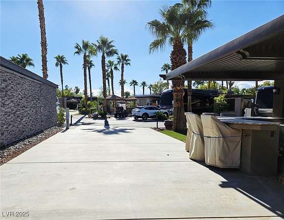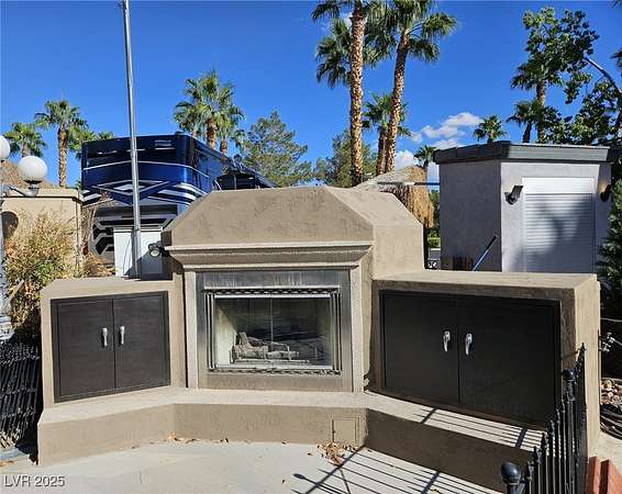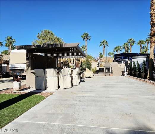 Est $2,301/moLocated within the Class A Las Vegas Motorcoach Resort, this site has a great location near the clubhouse! This site is located near all the resort amenities and features a hard roof structure, full kitchen, bar seating area, fireplace, storage area, and much more!