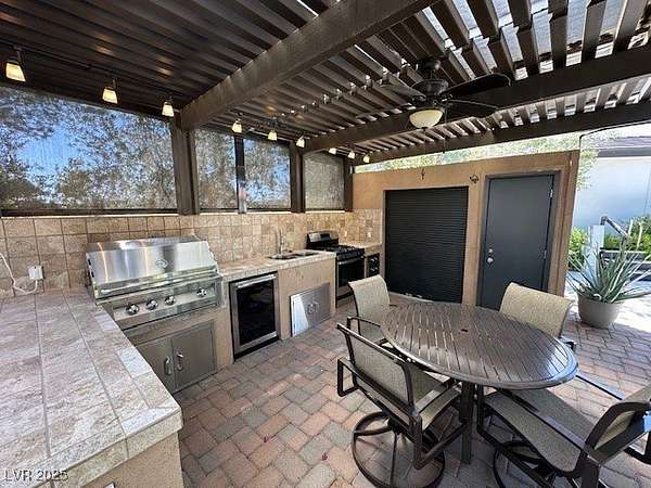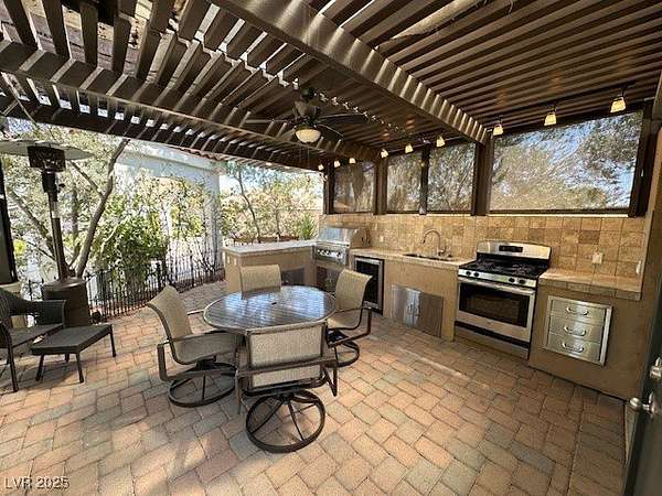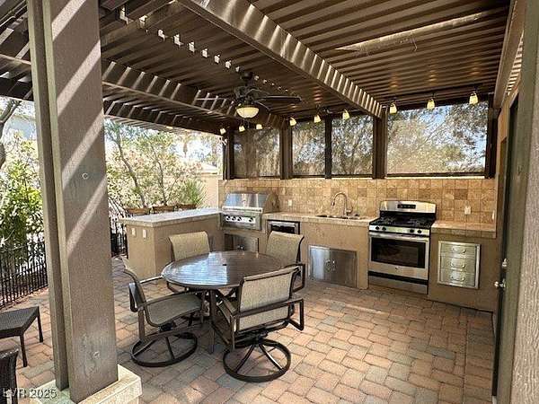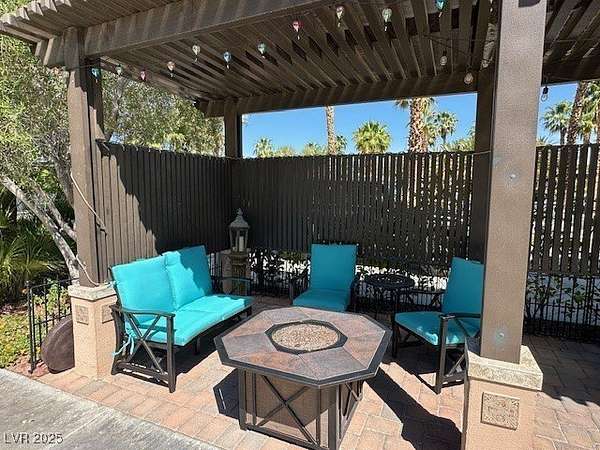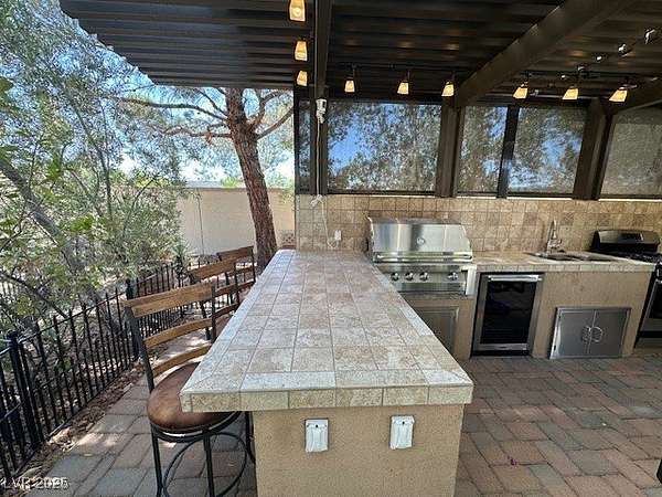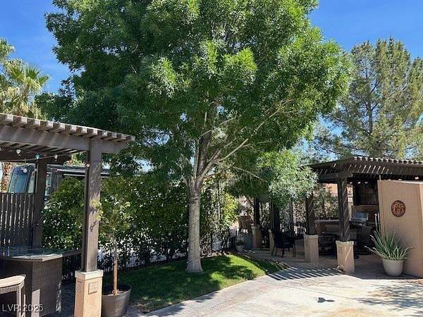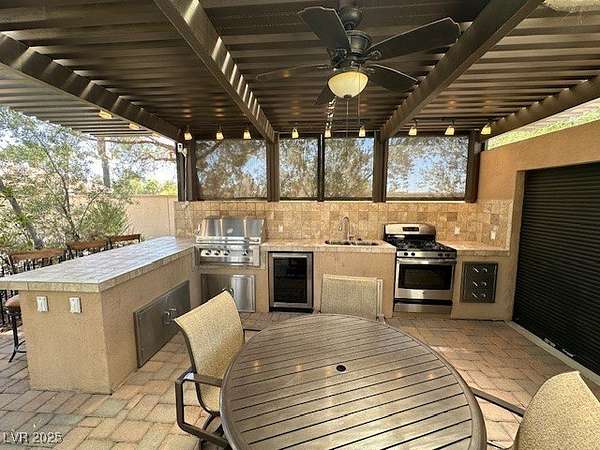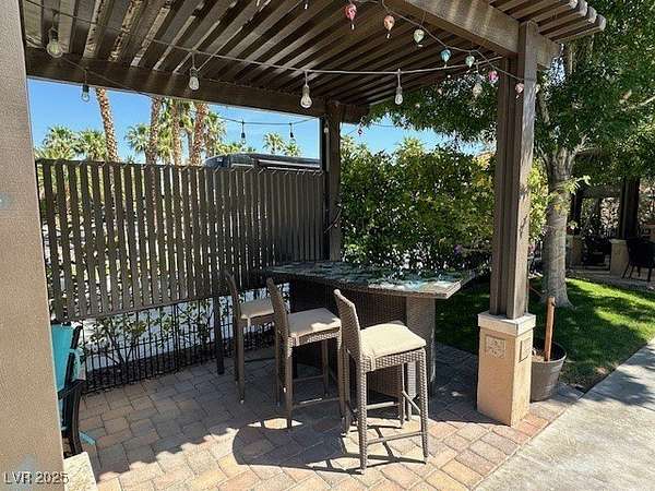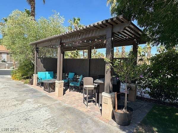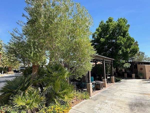Est $2,563/moLocated within the Class A Las Vegas Motorcoach Resort. This hidden gem located across from one of the resorts satellite facilities and pool, has it all! No expense has been spared on the full pergola build out with roll down shades featuring a full kitchen, bar and living area. A TV is hidden behind a roll up door, as well as storage space and hookups for a washer/dryer. Don't pass up this remarkable deal!