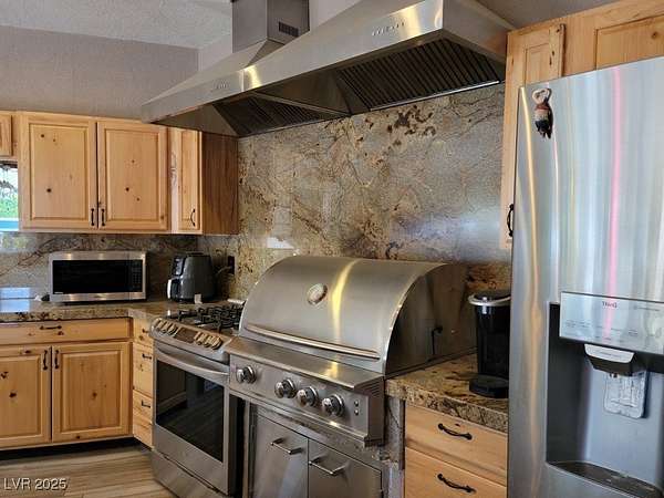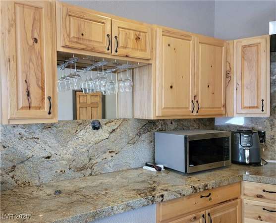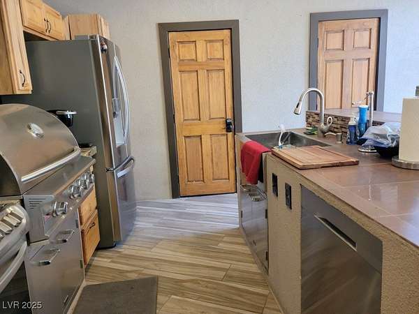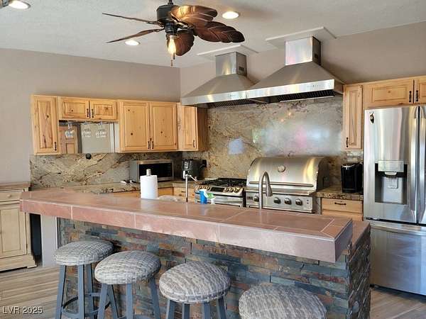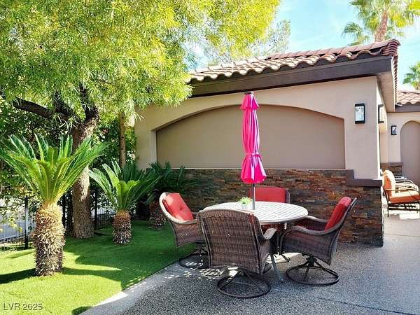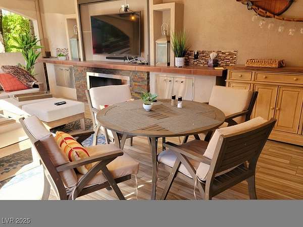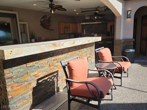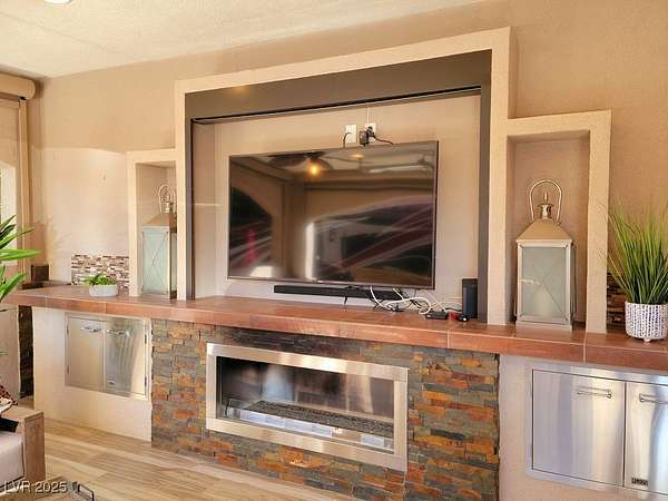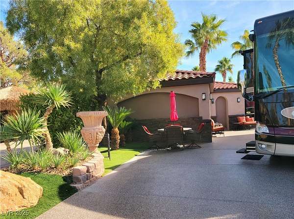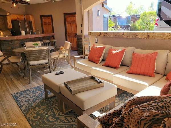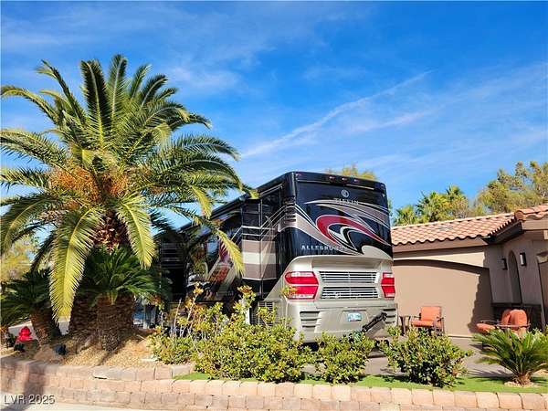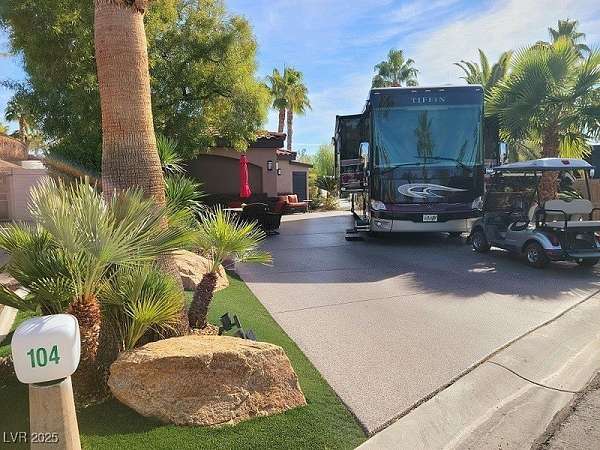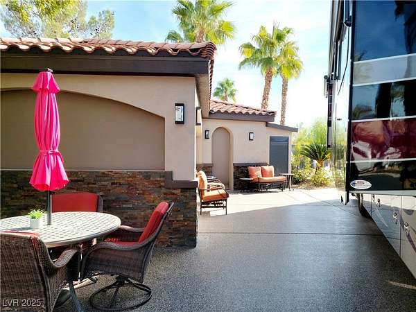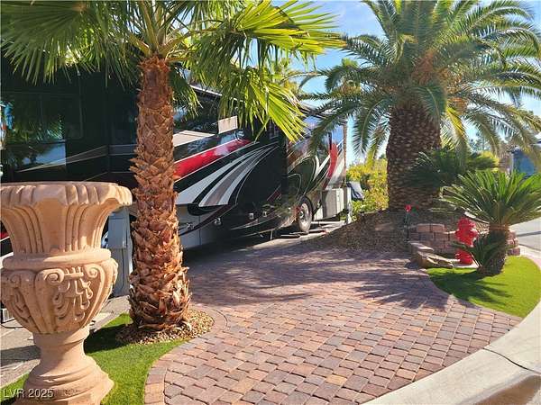 Est $4,561/moLocated within the Class A Las Vegas Motorcoach Resort. This site is Big and Spacious! This large corner site is a real must see! A fully constructed stucco and stone build out that fully encloses with drop down shades. Featuring a living room area with fireplace and TV hidden behind a remote-controlled roll up door. There's also a large granite topped bar area, as well as a full kitchen with every imaginable amenity, with abundant storage, and even a restroom for your convenience. OWNER WILL CARRY!