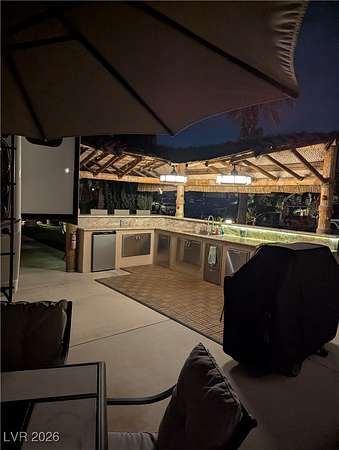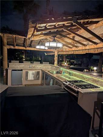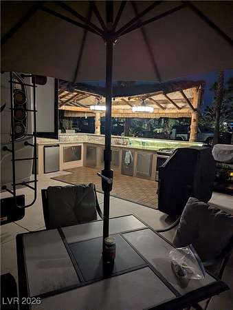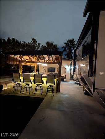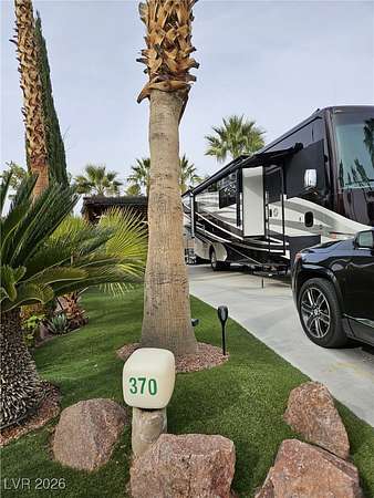 Est $2,625/moSite 370 is a beautifully upgraded property located within the guard-gated Las Vegas Motorcoach Resort, offering exceptional comfort, shade, and privacy. This site features both a palapa and a hard-roof structure, creating inviting outdoor living spaces ideal for relaxing or entertaining. The gourmet kitchen includes granite countertops, bar seating, and stainless steel appliances. The living room area is fully equipped with a TV, shades, furnishings, and more. The ample storage area includes a washer and dryer making this a turnkey opportunity to enjoy the luxury motorcoach resort lifestyle just minutes from the Las Vegas Strip.