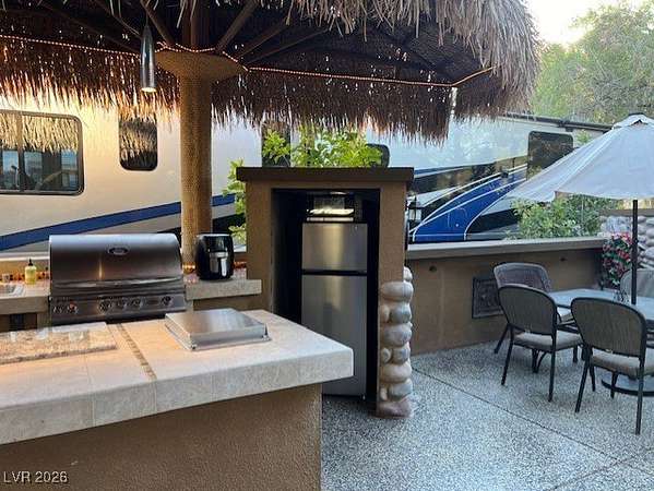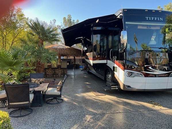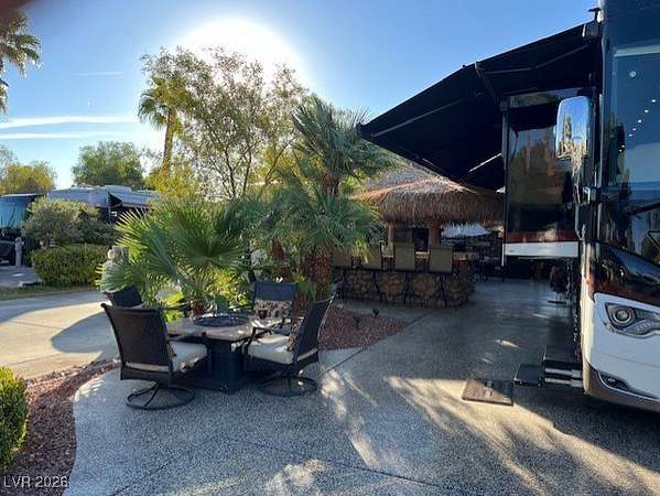 Located within the Class A Las Vegas Motorcoach Resort, this site is Cozy and Private! This amazing north facing site is adjacent to one of the satellite pools and features a full gourmet kitchen with stainless steel appliances, palapas, living room area, storage, and more!