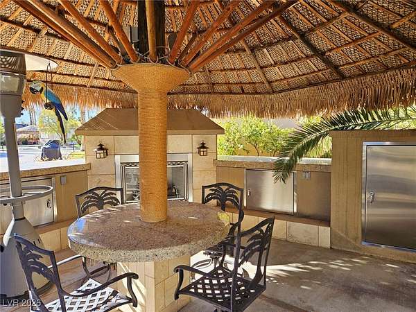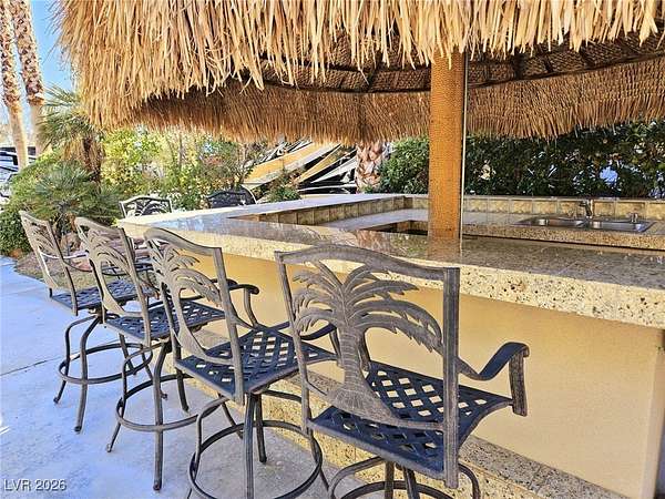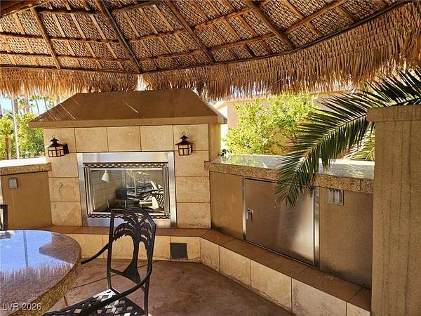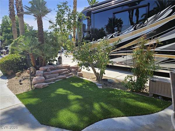 Est $3,133/moLocated in the guard gated Las Vegas Motorcoach Resort, this gorgeous corner site located near the main clubhouse has plenty of privacy, lush landscaping, and also features multiple palapas, outdoor kitchen, granite counters, fireplace, dining area, and more!
