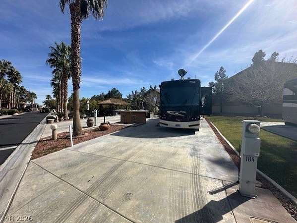 Est $2,128/moLocated within the Class A Las Vegas Motorcoach Resort, this beautiful North facing perimeter site features an outdoor kitchen with granite counters, BBQ, and a patio dining set. The back of the site features a large open grass area and has great potential for a future build out.