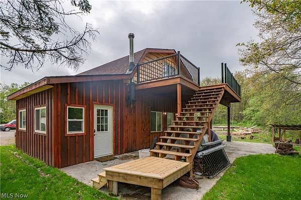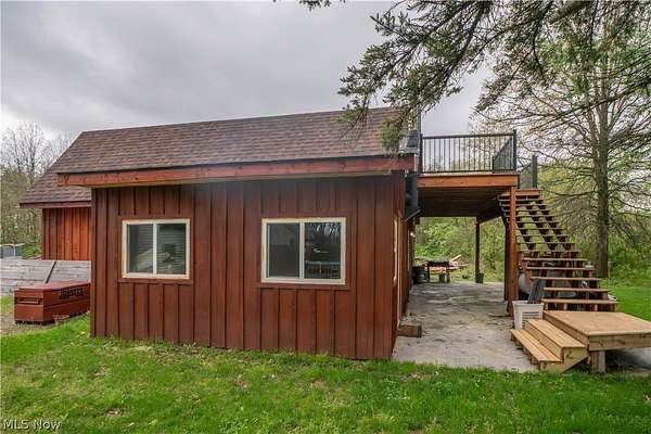 Rare income-producing opportunity on over 2 acres in a convenient Massillon location. The highlight of this unique property is a spacious, remodeled barndominium offering exceptional rental or owner-occupant potential. Featuring soaring ceilings and versatile living space, the open-concept main level includes a large living area with a wood-burning stove, an eat-in kitchen with custom details and stainless steel appliances, and a half bath. The upper level offers additional bedrooms, a full bath, loft space, and access to an upper deck-ideal for enjoying the surrounding open land. An additional single-family home on the property provides a second rental opportunity, featuring a comfortable living room, eat-in kitchen with ample cabinetry, and two bedrooms sharing a full bath. Outdoor amenities include covered patio areas and plenty of usable land. With multiple income-producing structures on one parcel, this property offers excellent flexibility and strong investment potential. Don't miss this once in a lifetime investment opportunity!
