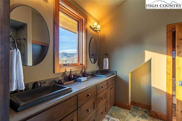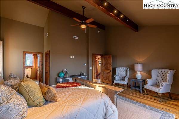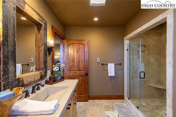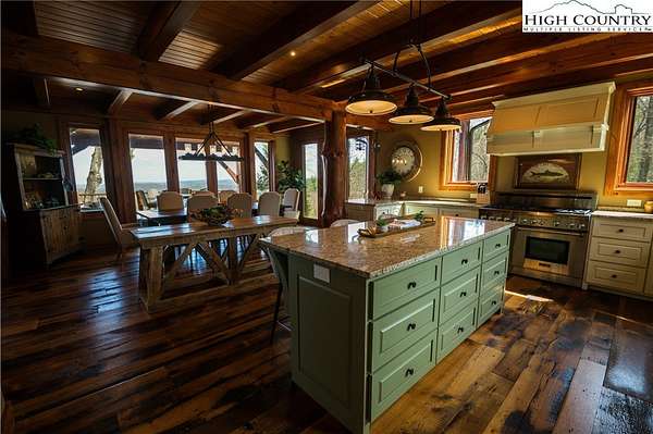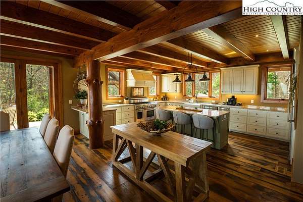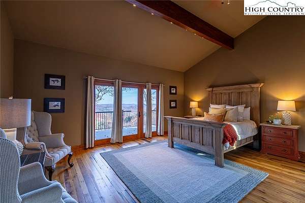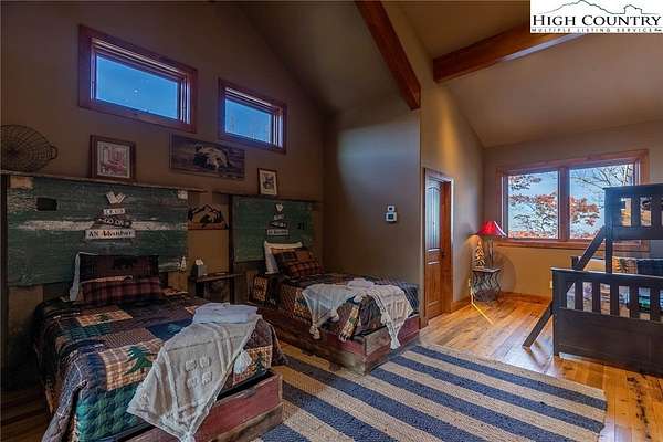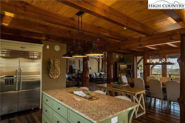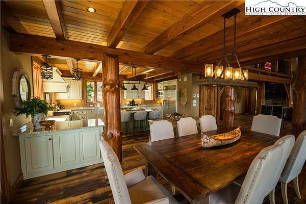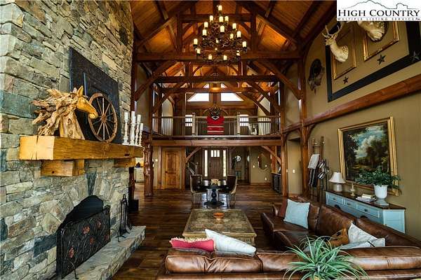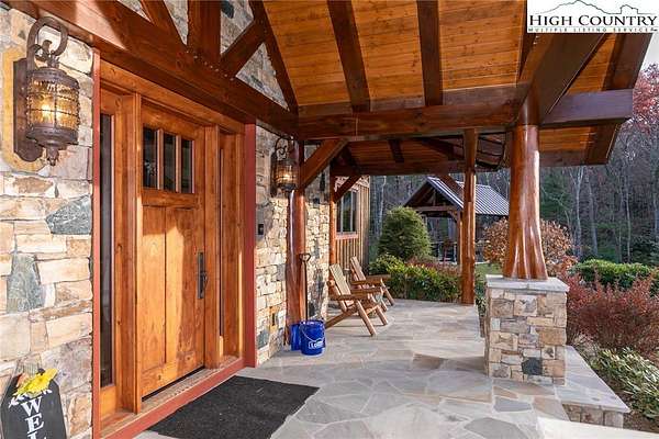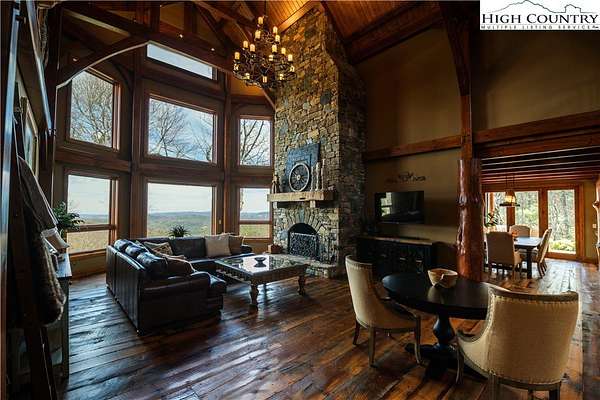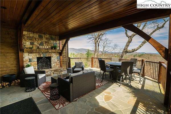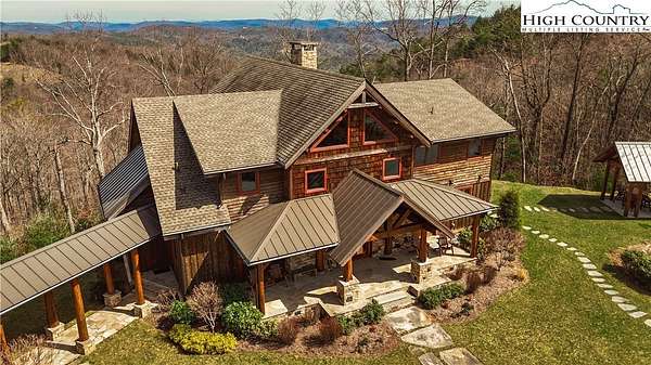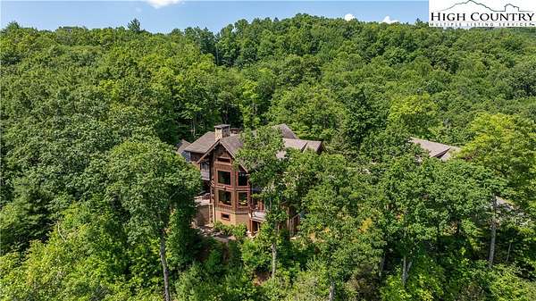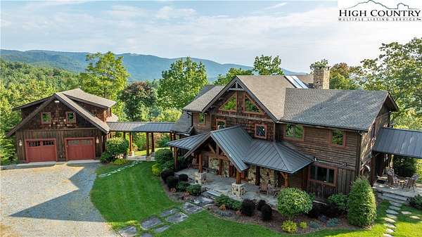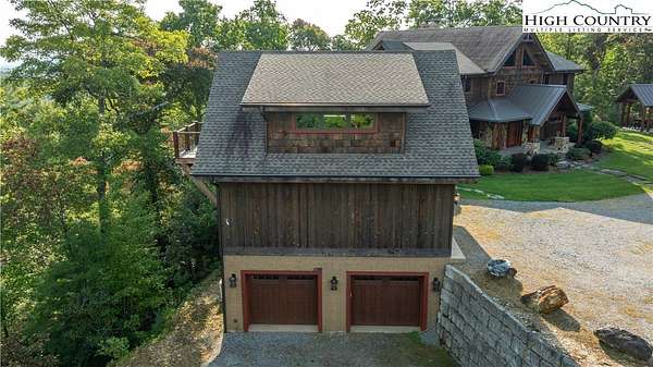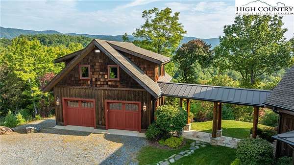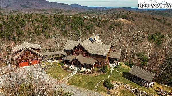 Nestled just ten minutes from the charming town of Blowing Rock, this exquisite luxury 3-bedroom 3.5-bath custom timber-frame lodge with 4 car garage including studio suite with murphy bed, kitchen, balcony, and full bathroom above the garage. The home presents breathtaking panoramic views of the Blue Ridge Mountains built on a 12 acre lot and part of a 110 acre subdivision called Bailey's Creek with only 7 homesites.