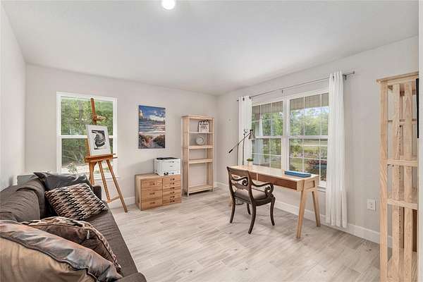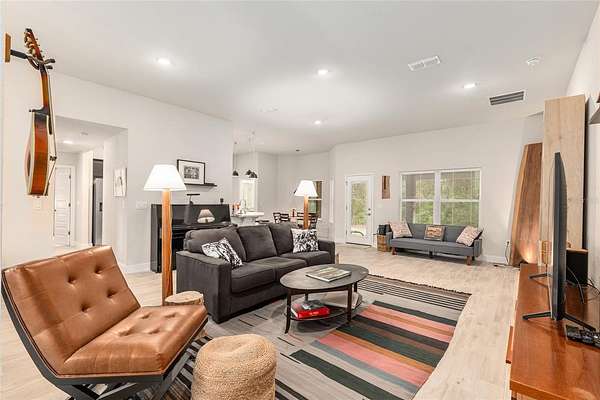 Just 25 minutes from NW Gainesville, tucked just over the Gilchrist County line (hello, lower taxes), you’ll find the sought-after Woods of Alchrist community—where space, privacy, and nature come standard. Built in 2021, this thoughtfully designed home sits on an expansive 4.8-acre lot, offering the perfect blend of cleared land for everyday living and wooded surroundings for peace and privacy.