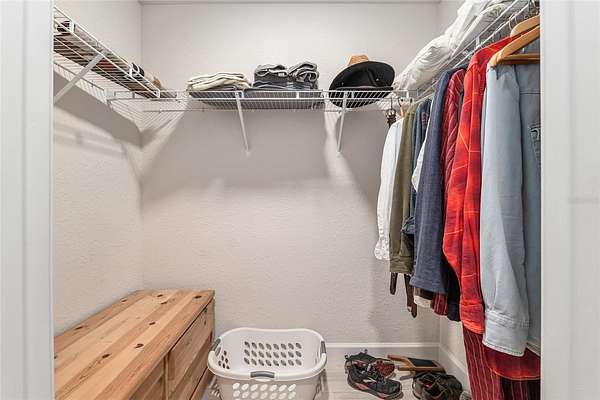 - Eat-In Kitchen, High Ceilings, Primary Bedroom Main Floor, Split Bedroom, Thermostat, Walk-In Closet(s), Window Treatments