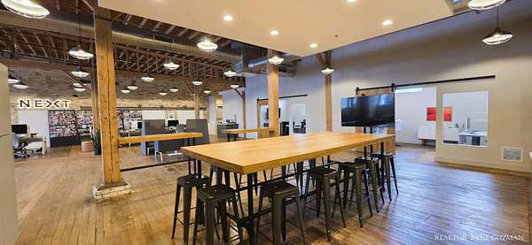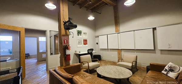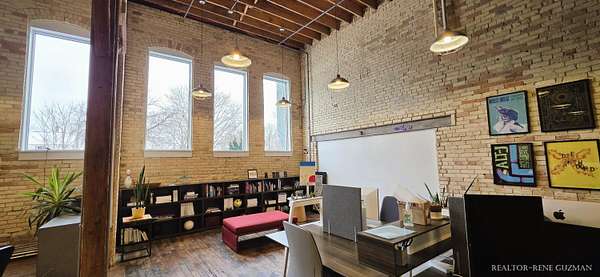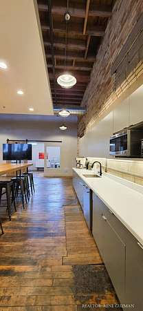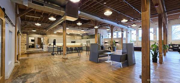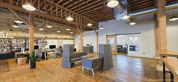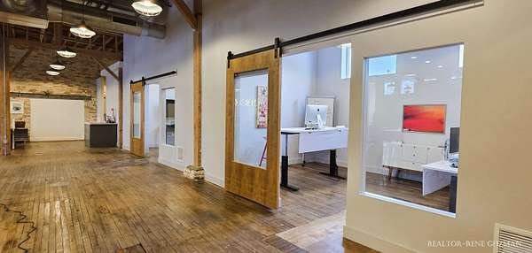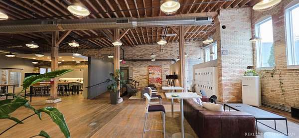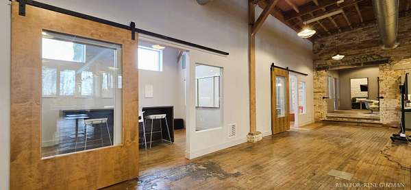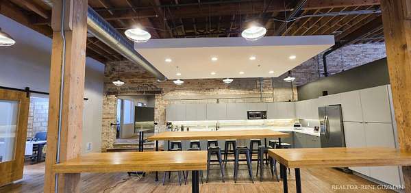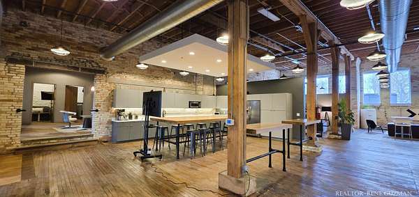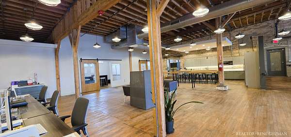 Welcome to your next business hub-a stunning 5,311 sq ft space nestled within the historic Goei Center. This gorgeous business center blends rustic charm with modern functionality, offering an inspiring environment for creative teams, startups, or established companies. With its wood floors, high ceilings, full kitchen, locker rooms, and abundant natural light from large windows and skylights, it's designed to foster productivity and collaboration. Private Offices-Multiple enclosed offices with large entrances and windows, allowing sunlight to flood in while maintaining privacy. Full Kitchen-Modern setup with appliances, counter space, and bar seating. Spacious Open Areas-Expansive layouts with high ceilings and wooden beams, perfect for collaborative work, meetings, or casual brainstorming sessions. Available for lease, this versatile space is ready to elevate your operations in one of Michigan's most vibrant cities.