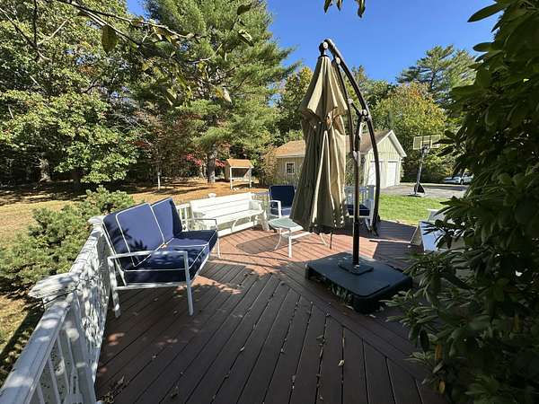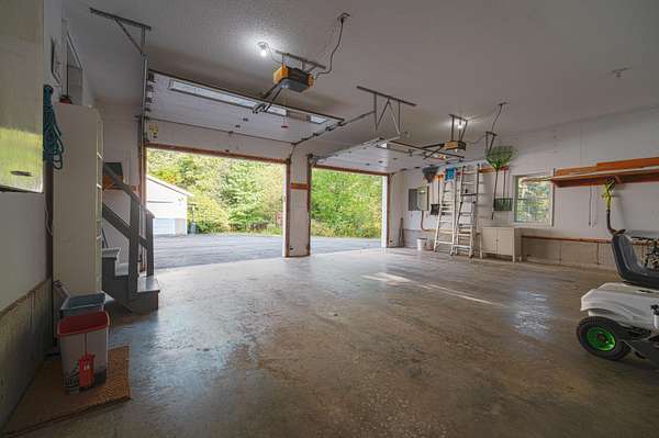 Welcome to an exceptional property that perfectly blends modern comfort with natural beauty. This updated contemporary ranch sits on 17 acres, creating a private oasis just minutes from both Bangor and Orono. Step onto the welcoming porch and into an open-concept living space that seamlessly connects the living room, dining area, and kitchen with a center islandaEUR"ideal for everyday living and entertaining. The first-floor primary suite is a true retreat, featuring a spacious dressing room, double vanity bath, and picture windows with stunning backyard views that bring the outdoors in. Upstairs, you'll find three additional bedrooms with generous closets, a full bathroom with jacuzzi tub and makeup table, and a cozy sitting areaaEUR"perfect for family or guests. The finished basement expands the living space with a warm wood stove, another bathroom, and a workshop with walkout access. Thoughtful details throughout include a magnetic wall for showcasing photos, a half bath and laundry room between the garage and living area, and a utility tub that doubles as a pet bath. Practical spaces abound with a 2-car attached garage plus a detached 2-car garage for extra storage or hobbies. Outside, a concrete path winds towards the woods, inviting you to explore your own private sanctuary. Outdoor enthusiasts will love the easy access to Bangor City Forest trails and nearby Pushaw Lake, where fishing, boating, and recreation await.