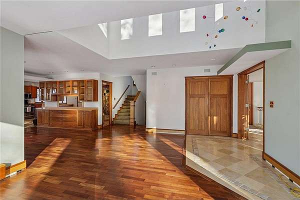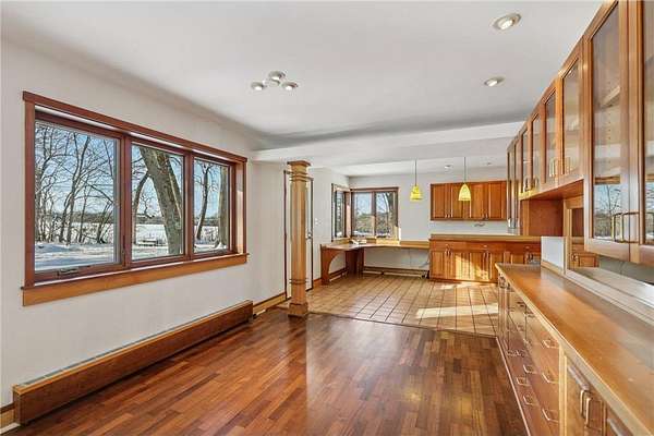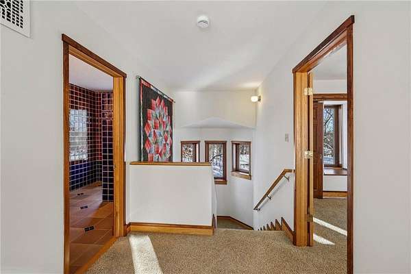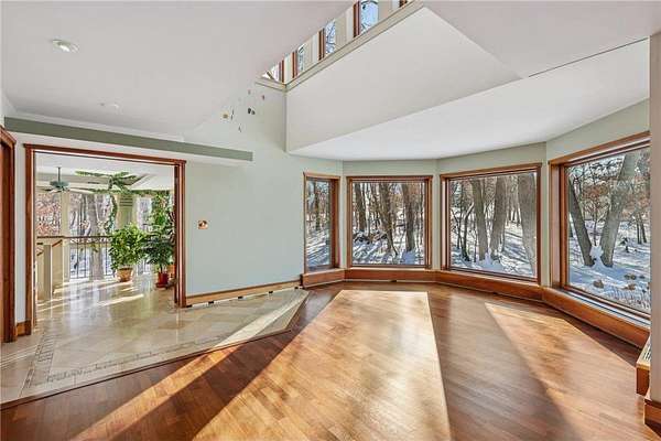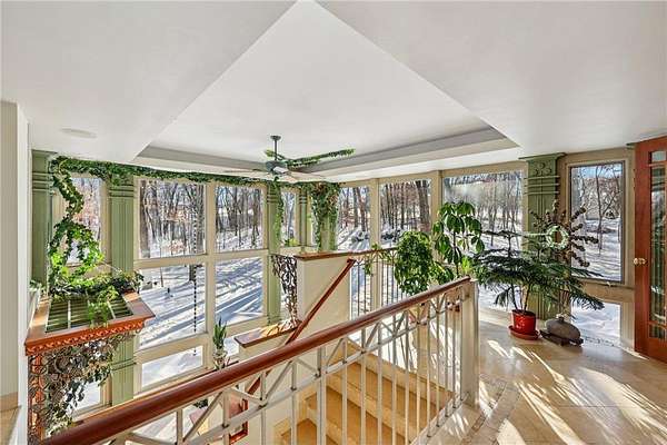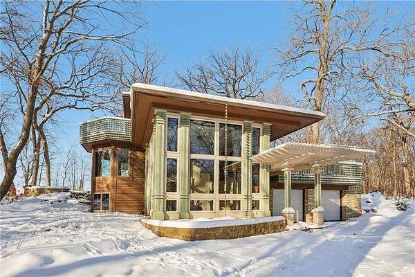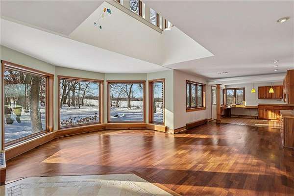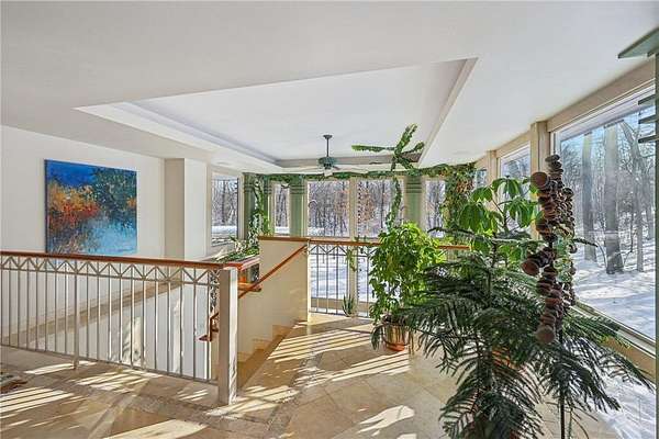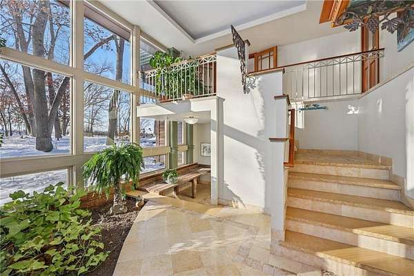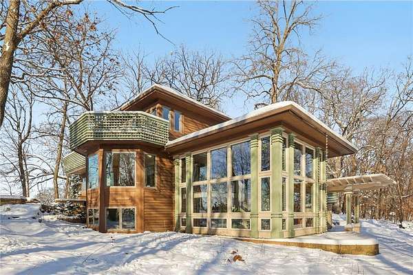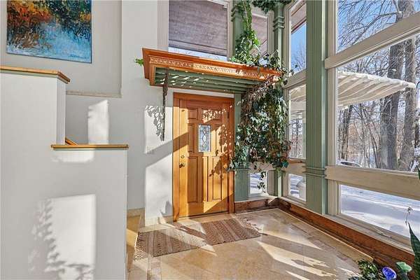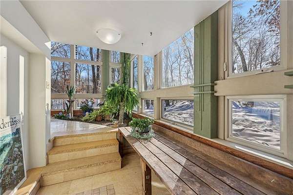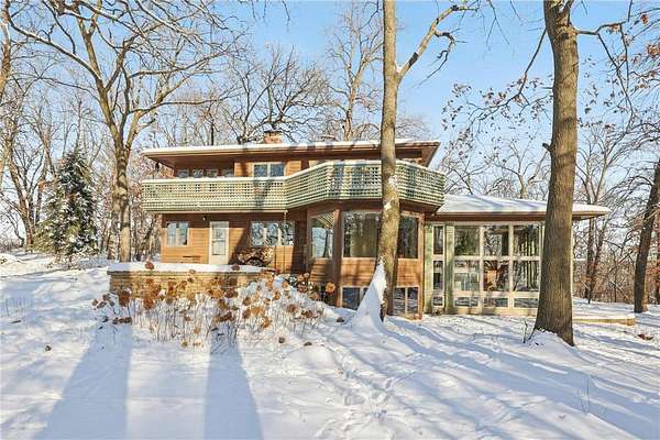 This one-of-a-kind property is a true architectural gem, blending timeless charm with exquisite detail inside and out. Nestled on 5 private wooded acres, the home offers a peaceful retreat just one mile from Afton Alps, Afton State Park, and the Carpenter Nature Center. The interior features a bright, open layout with a sun-filled atrium and foyer, custom wood ,stone, and tile flooring throughout.