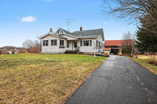 Step into the charm of country living with this beautiful farmhouse set on 14 picturesque acres. Full of character and timeless appeal, this spacious home offers 4 bedrooms and 2 bathrooms, including a main floor bedroom suite with its own private bathroom, perfect for guests, multigenerational living, or convenient single-level living. The property truly shines outdoors. A classic historic barn with a basement provides incredible storage and rustic character, while a newer barn offers additional space for animals, equipment, hobbies, or future possibilities. A detached three-stall garage adds even more functionality for vehicles, tools, and toys. Nature lovers will appreciate the established apple orchard and the expansive 14 acres, providing endless opportunities for gardening, recreation, hobby farming, or simply enjoying peaceful country views. Whether you're dreaming of a hobby farm, a rural retreat, or a place with room to grow, this is the property for you!