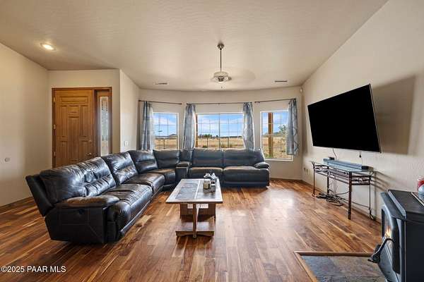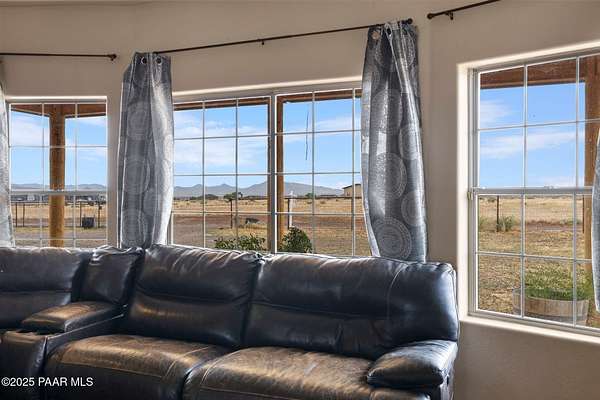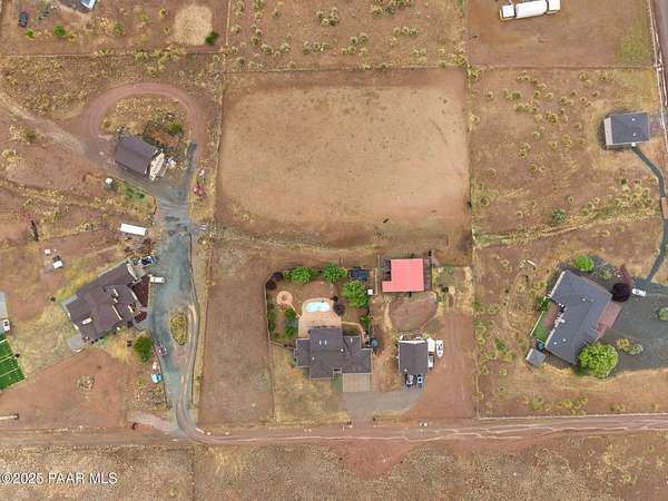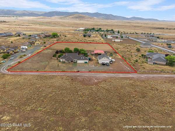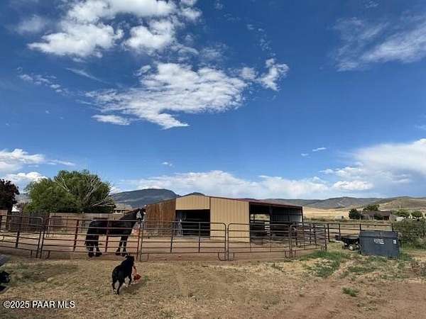 Welcome to your dream retreat in beautiful Coyote Crest! This 4-bedroom, 2-bath home sits on 3 fully usable acres, offering breathtaking views of both Mingus Mountain and Granite Mountain. Perfect for equestrian enthusiasts, including a 4 stall barn, tack room, and plenty of room for your horses to roam. Private well with additional holding tank. There's even a detached shop with insulated office space complete with heating and cooling, ideal for home business, or extra storage. Inside, you'll find a thoughtfully designed floor plan with a spacious owner's suite, open living areas, and large windows to take in the panoramic views. The backyard includes an underground pool, perfect for enjoying Arizona's sunny days. Don't miss this opportunity to own a piece of the high desert with room to live, work, and play!
