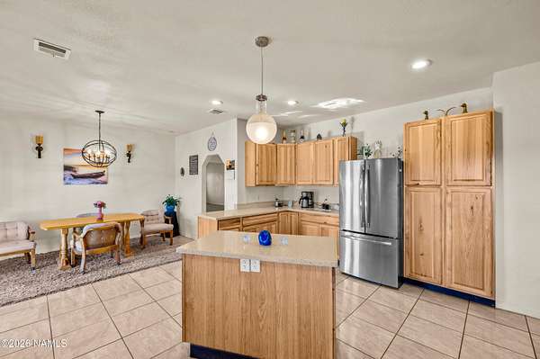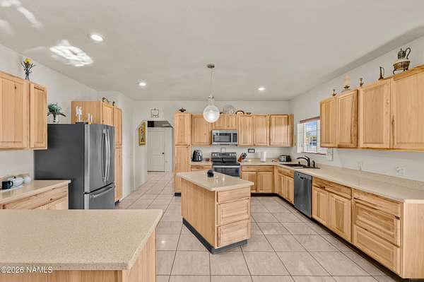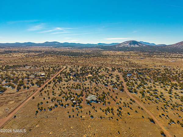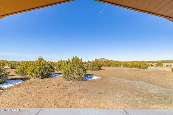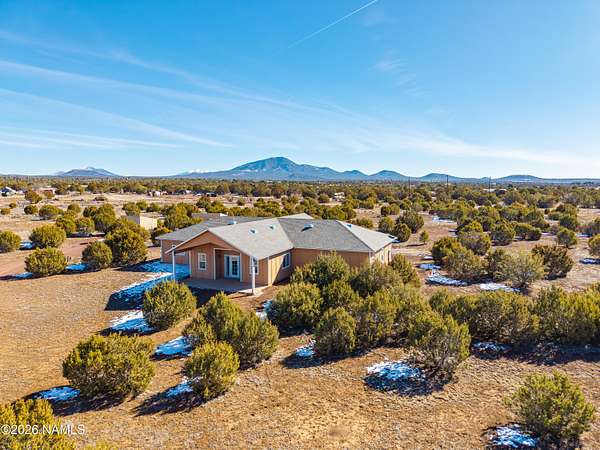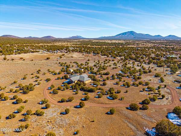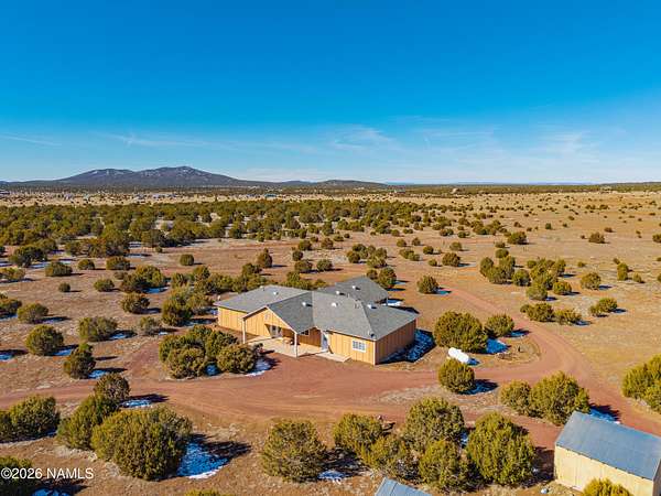 North of Williams and tucked down a quiet country lane, this spectacular 10-acre property offers privacy, space, and true Northern Arizona living. The custom, single-level home spans over 2,600 square feet with an expansive great room and an oversized primary suite. The kitchen features solid Corian countertops, custom hickory cabinets, and includes all stainless steel appliances. Built for energy efficiency, the home offers 2x8 construction with extra insulation for year-round comfort. Set among tall pinon and juniper trees, the land feels like your own private forest. Enjoy peaceful views from the covered patio, plus a circular driveway, multiple outbuildings, and room for horses or garages. Convenient to National Forest access, Williams, Flagstaff, and the Grand Canyon.