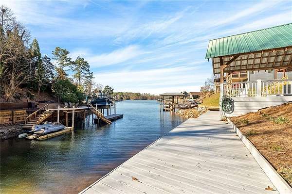 Outdoor living includes over 1,100 sq. ft. of covered porches with composite decking, a landscaped yard with Zoysia sod and lake-fed irrigation, and a tiered backyard with stone accents leading to a 65-foot swimming and docking pier with covered cabana--perfect for enjoying Lake Martin sunsets.