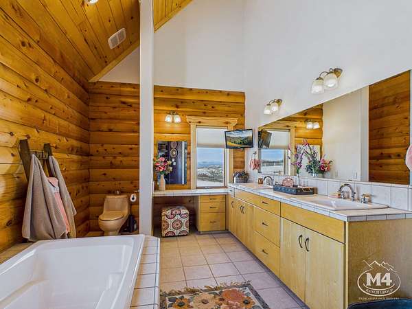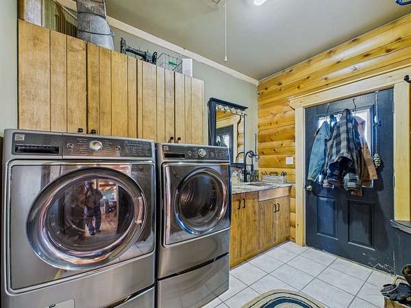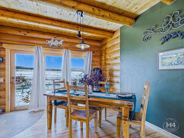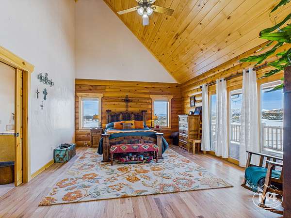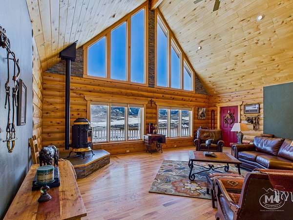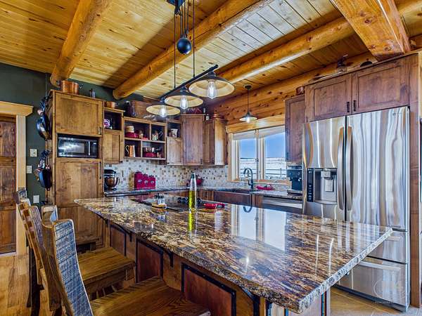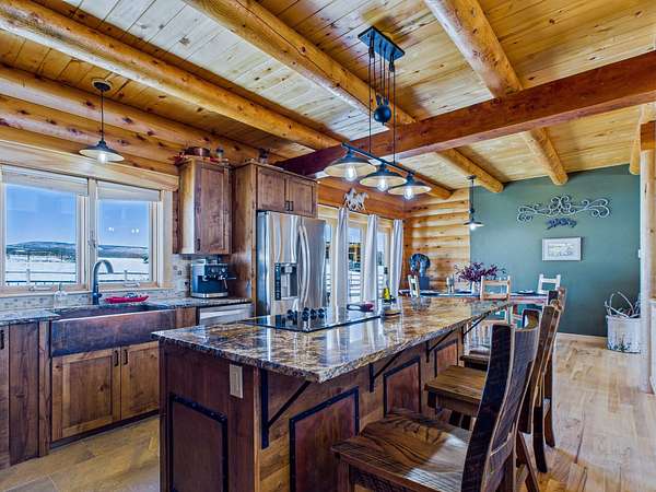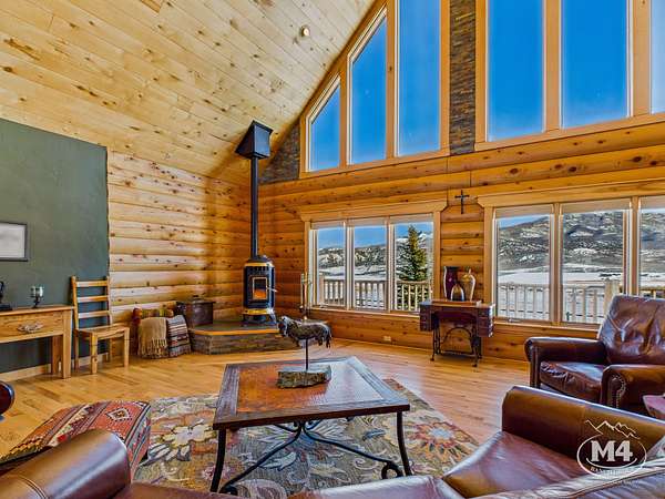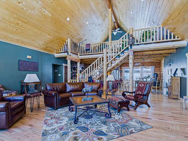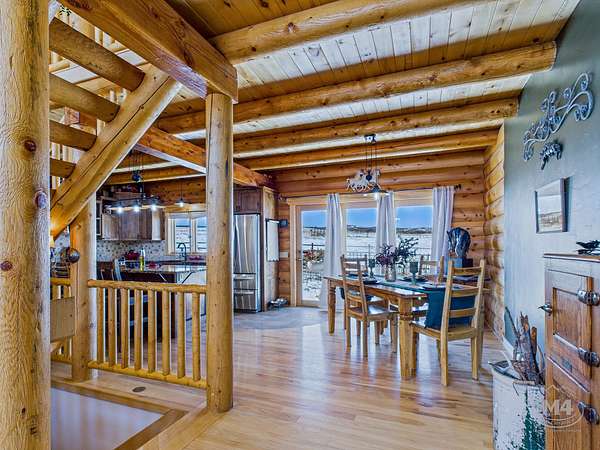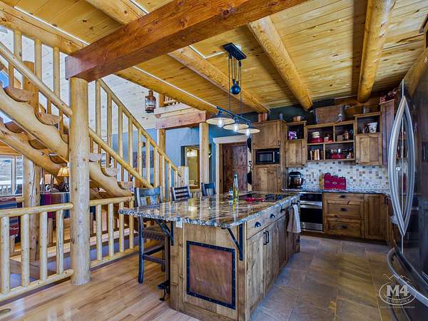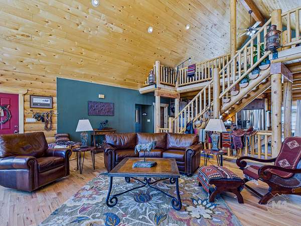 The primary residence is a 5-bedroom, 3-bath log lodge designed for comfortable, lodge-style living. Features include: