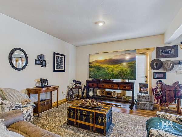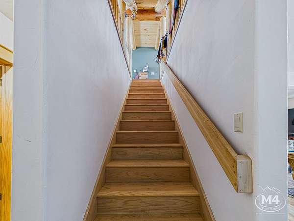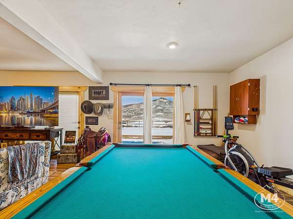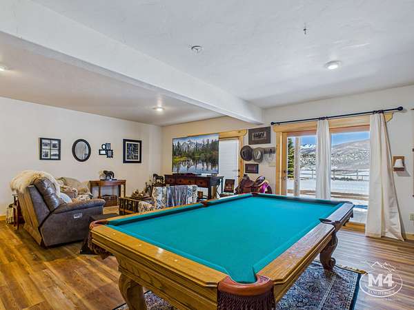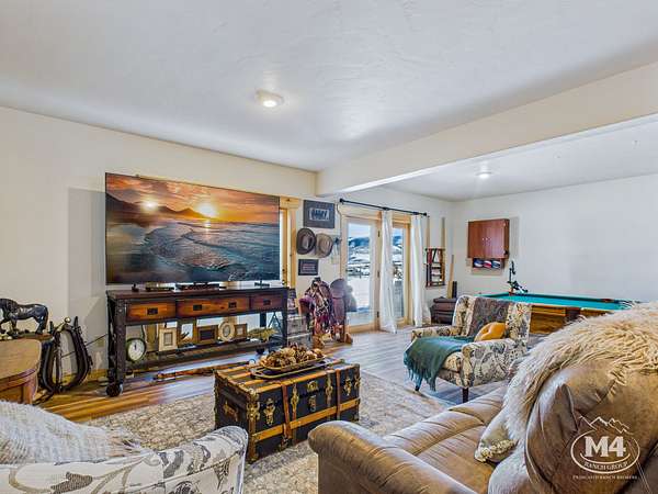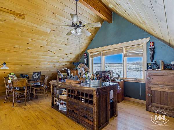 The updated kitchen includes granite countertops, an island cooktop, and ample space for entertaining and post-hunt gatherings. An upstairs loft offers flexible use as an office, hobby space, or additional living area. The walk-out basement provides two additional bedrooms, a bathroom, game or recreation room, pantry, storage, mechanical room, and garage access, well suited for hosting family, guests, or hunting parties.