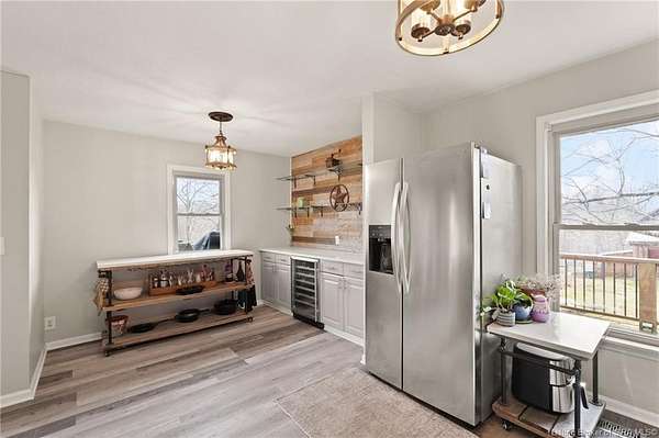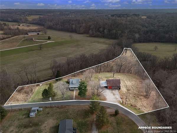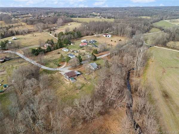 Welcome Home to an adorable, updated 4 bedroom, 2 full bath bungalow that offers the perfect blend of charm, character, and modern convenience. Nestled on 5.55 STUNNING acres, the property provides endless possibilities, from gardening and outdoor hobbies (Think HORSES, GOATS, CATTLE!!) to simply enjoying the peace and quiet of wide-open space. Step inside the warm, inviting floor plan to find low-maintenance laminate and LVP flooring! The kitchen and bathrooms have been thoughtfully refreshed, (check out that HUGE double door pantry and QUARTZ counters), while the cozy bedrooms offer the perfect retreat. Outdoors is where this property truly SHINES! Entertain family and friends under the gorgeous pergola, wraparound expansive deck, or walk along the CREEK that is also on the property. The historic barn adds timeless charm and could be repurposed for storage, animals (TWO HORSE STALLS PRESENT), or creative projects. Hobby farming, hiking your own land, or simply soaking up the tranquility, this property delivers! Here's your opportunity to own a slice of country paradise. ONLY 10 minutes to Huber's Orchard and Winery and a mere 25 minutes to Louisville, KY! Recent updates include: Roofing maintenance seal, new water heater (2025), New heat exchanger (2023), new AC condenser (2025), newer dishwasher (<1yr old), Radon Mitigation installed (2023). Ample storage space in cellar. USDA financing eligible area! Sq ft & rm sz approx