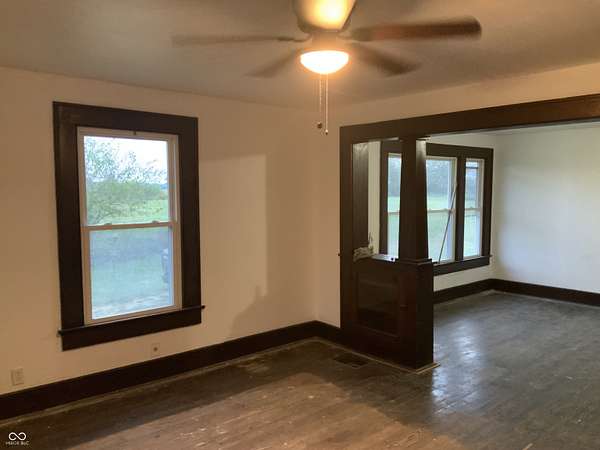 Nestled on 3.57 acres in Tri-West Schools, 8196 N County Road 300 W, offers a compelling opportunity, especially for those with a vision for investment. The kitchen stands ready to become a culinary centerpiece, featuring shaker cabinets that provide a foundation for both style and functionality. Kitchen includes range and newer stainless steel refrigerator. Imagine transforming this space into a welcoming area where meals are prepared and memories are created. This home includes two bedrooms and one full bathroom within its 1048 square feet of living area across one story. There is a large attic which potentially could be finished. There is a den off of the primary bedroom which could be utilized as a walk in closet, nursery, den, etc. The home has a fresh coat of interior paint, outlets have been updated, its ready for you to make it your own. Full basement unfinished basement. Large screened porch to enjoy the sunrises and sunsets. Over 3.5 ac gives you plenty of room to add garage and /or barn should you choose. Want more land? 3 additional acres could be purchased for an additional $120,000. This property, with its potential and location, presents an exciting chance to create a rewarding investment.