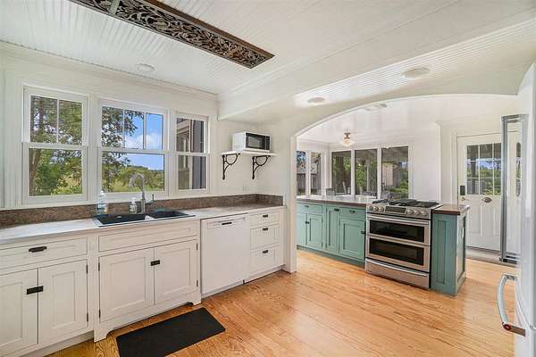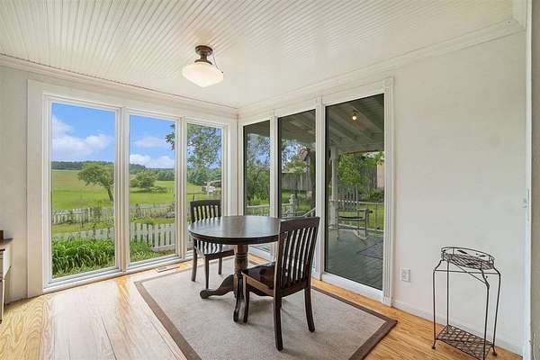 Welcome to your dream hobby farm, perfectly located between Petoskey, Boyne City, and Charlevoix. Set on 2.5 peaceful acres, this updated farmhouse offers a stylish blend of modern comfort and country charm. The exterior features a newly sided home, new windows, and a 40-foot covered front porch overlooking the expansive pasture and garden areas. The property is move-in ready for your hobby farm dreams, with an electric-fenced pasture and a clean, updated barn complete with a new barn door. Step inside to a bright, open living space filled with natural light. The newly remodeled kitchen boasts custom Preston Feather cabinetry and flows into a dining area with floor-to-ceiling windows framing scenic views. Throughout the home, you'll find refinished hardwood floors, modern finishes, and thoughtful touches--like the timeless clawfoot tub that adds character to the updated bathrooms. With 3 bedrooms, 2 bathrooms, and open-concept living, this home offers the perfect balance of function and style in a serene Northern Michigan setting. Please note: Appliances not included in sale.