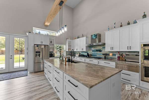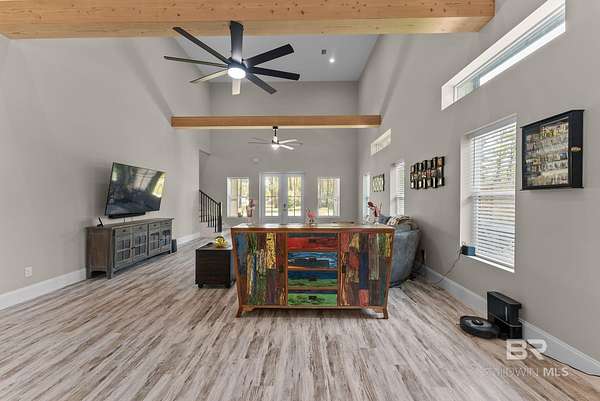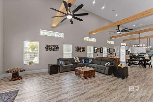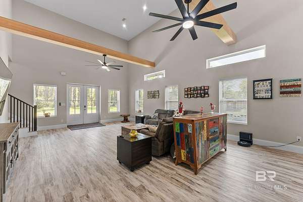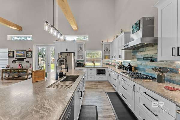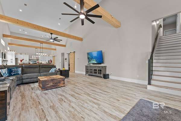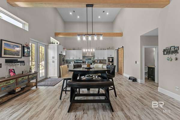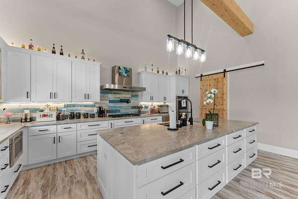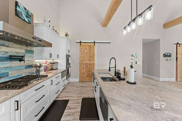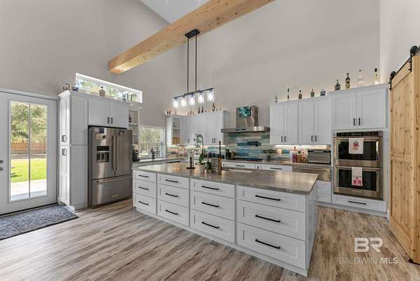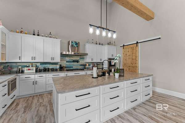 This stunning 4,400 sq ft, 4 bedroom, 4.5 bathroom custom-built barndo perfectly blends luxury living with wide-open functionality — all set against breathtaking sunset views and peaceful surroundings.Step inside to soaring ceilings, an abundance of natural light, and a thoughtfully designed open-concept layout. The heart of the home is the show-stopping chef’s kitchen, featuring an oversized island, custom cabinetry, high-end stainless appliances, and a unique coastal-inspired backsplash that adds the perfect pop of character.The spacious living and dining areas flow seamlessly, making this home ideal for entertaining or everyday comfort.Retreat to the luxurious primary suite, complete with a spa-like bathroom featuring a soaking tub, oversized vanity, and custom finishes throughout. Each additional bedroom offers generous space and its own private or adjacent bath, providing comfort and privacy for family or guests.Designed with both style and function in mind, this home also features: A massive covered outdoor living area perfect for relaxing or entertaining Expansive workshop/garage space with endless possibilities Dedicated laundry room with custom cabinetry and workspace Designer finishes, fixtures, and tile work throughoutFrom the sleek modern interior to the impressive exterior structure, this property delivers the perfect combination of barndo charm and upscale living.Properties like this don’t come around often — space, style, and versatility all in one place! Buyer to verify all information during due diligence.