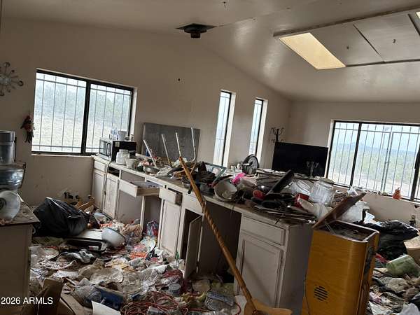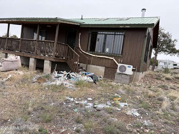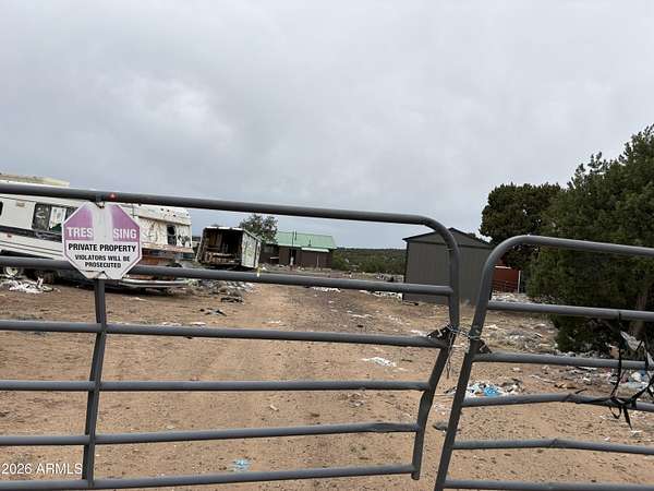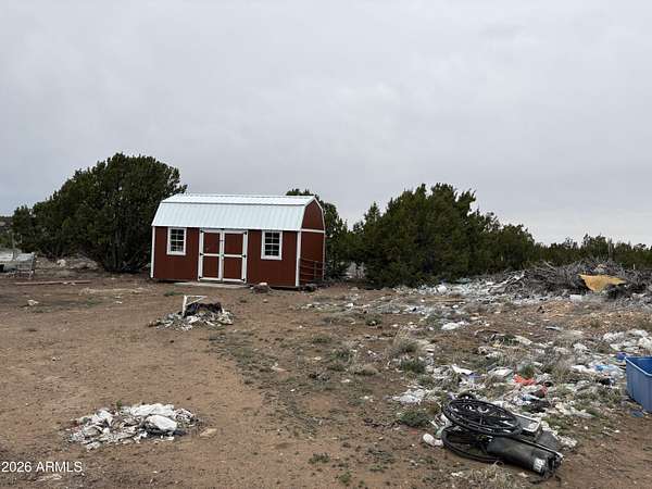 Est $388/mo10 acres with site built home and two nice wooden tuff sheds - needs alot of clean up and some repair - fully fenced - bring your livestock. Two bedroom, one bath home with steel roof. Arizona Well Registry shows well drilled but not completed - buyer to investigate as part of due diligence 55-0924629