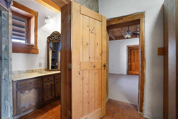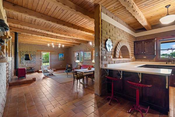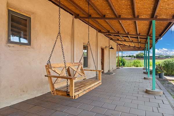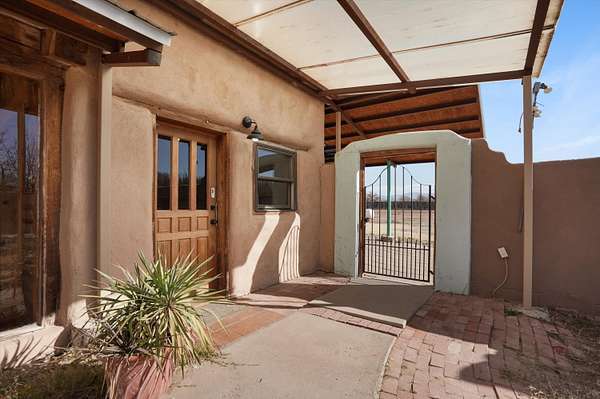 Discover an extraordinary adobe home set on more than 5 acres, this beautiful retreat showcases breathtaking Manzano Mountain views and a rich sense of history. Enjoy indoor-outdoor living with a sunroom, patio, and wrap-around portal. Inside are 4 spacious bedrooms, two of them with en-suite bathroom for comfort and privacy. With 175-year-old adobe walls, Pella double-glazed windows, and a custom metal roof, the home offers cozy and efficient living year-round. Practical outbuildings, like a garage, carport, storage/workshop, corrals, and shed rows, cater to your needs. All while conveniently located just minutes from I-25 for an easy commute. NEW Septic was installed end of January!