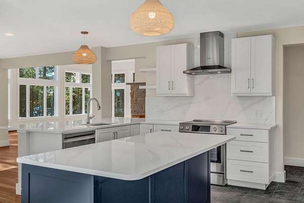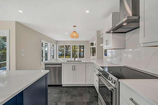 Incredible privacy with this 9.4 acre peninsula property that is actually comprised of 5 different points of land and over 3200' of diverse ocean frontage with ledges and pocket coves. The home has been completely remodeled in the last two years right down to window and door replacements, new roof, new paint inside and out, new floors, new kitchen and bathrooms and more. Fabulous setting with southern views toward the mountains of Acadia and frontage on the Skillings River and Martins Cove where you can moor your boat. The western peninsula has power already run down a path for another private building site on an entirely separate peninsula away from the main house. Plenty of natural light throughout and great flow on the main level for one floor living. Simply an incredible property and an immaculate house