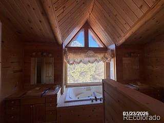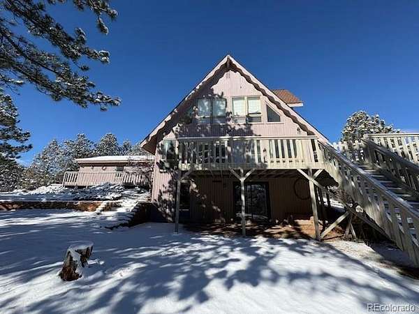 Wonderful Opportunity with Endless Potential! This 3-bedroom, 4-bath home set on 10 scenic acres is ready for you to create your own dream retreat. Expansive windows throughout fill the home with natural light while showcasing stunning panoramic views. The main level offers an open floor plan featuring a spacious living room, dining area, kitchen, and bedroom with a full bath. Upstairs, you’ll find a large primary suite, an additional bedroom and bath, plus an open loft ideal for a home office, TV room, or flex space. The walkout basement provides additional living space and includes a wet bar, ready for your personal finishing touches. An oversized detached garage offers ample storage for vehicles, equipment, and all your outdoor toys. Conveniently located near Highway 285 for an easy commute while still enjoying peaceful mountain living.