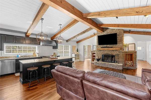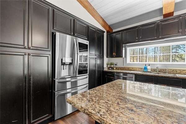 Welcome to peaceful living at 82 Lee Bone Rd in Dallas, GA, where privacy, space, and beautiful scenery come together. Nestled on 4.75 acres, this cozy home offers the perfect blend of comfort and outdoor enjoyment. The home features 3 bedrooms and 2 bathrooms, an updated kitchen, and all new carpet and fresh paint, making it move-in ready. Large windows allow you to enjoy the gorgeous views of the property and private stocked pond, creating a relaxing atmosphere both inside and out. Step outside to a fully landscaped yard with plenty of space to enjoy nature, entertain guests, or simply unwind while overlooking the peaceful water views. The entire property is serviced by an irrigation system, with water supplied from the pond or well when needed, helping keep the grounds lush and well maintained throughout the seasons. The property also includes a workshop with power, perfect for hobbies, storage, projects, or additional workspace. One of the standout features of this property is the additional lot located at the front of the property, offering excellent flexibility for future plans. Whether you envision building a second home, creating a guest house or in-law suite, adding a detached garage, setting up gardens and outdoor recreation areas, or designing your own private retreat space, the possibilities are wide open. If you're looking for privacy, land, and scenic surroundings while still being convenient to town, this property is a rare opportunity to make your vision a reality.