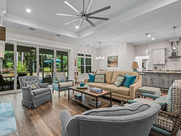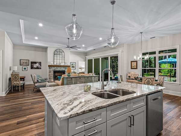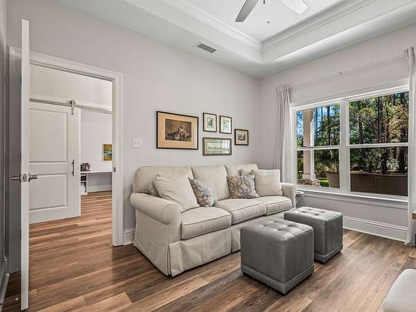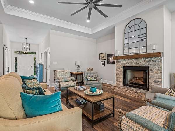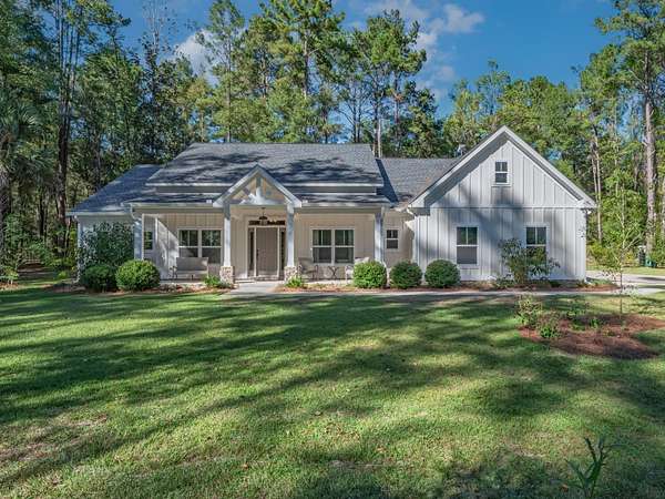 Discover your own secluded sanctuary tucked away in the woods. This like-new 4BR/4BA custom home with an office (or flexible bonus space) sits on 4 private acres, offering the perfect blend of peace, privacy, and a deep connection to nature. Surrounded by mature trees and untouched forest, the property is a true haven for wildlife - where modern comfort meets natural beauty. Inside, you'll find luxury vinyl plank flooring throughout the main living areas, kitchen, and several bedrooms, complemented by plush carpet in the additional rooms for cozy comfort. The chef's kitchen showcases granite countertops, stainless steel appliances, and an oversized island - perfect for gathering and entertaining. The open-concept living area flows effortlessly through expansive sliding glass doors to a screened porch, ideal for sipping morning coffee, watching deer graze, or enjoying golden sunsets through the trees. Each bedroom is a private suite with its own bathroom, offering exceptional comfort and privacy. The bathrooms feature beautiful quartz countertops and elegant finishes, while the primary suite provides a spa-like retreat with wooded views and a peaceful, restorative ambiance. Wake up to birdsong, unwind under starlit skies, and experience the serenity of living immersed in nature's beauty. Despite its sense of seclusion, this retreat is just minutes from shopping, dining, and schools - and a short drive to area beaches, rivers, St. Marks Wildlife Refuge, Wakulla Springs, downtown Tallahassee, and Tallahassee International Airport. Whether you're a birdwatcher, photographer, or simply someone who cherishes tranquility, this property offers a rare opportunity to live with nature - not just near it. interior photos soon